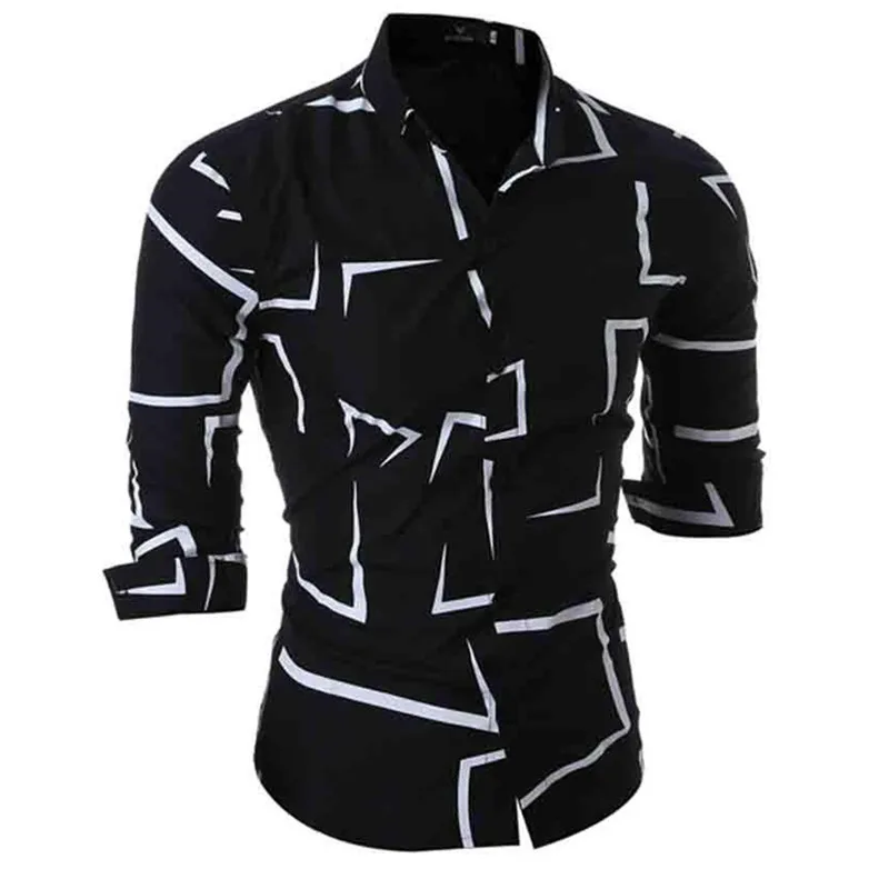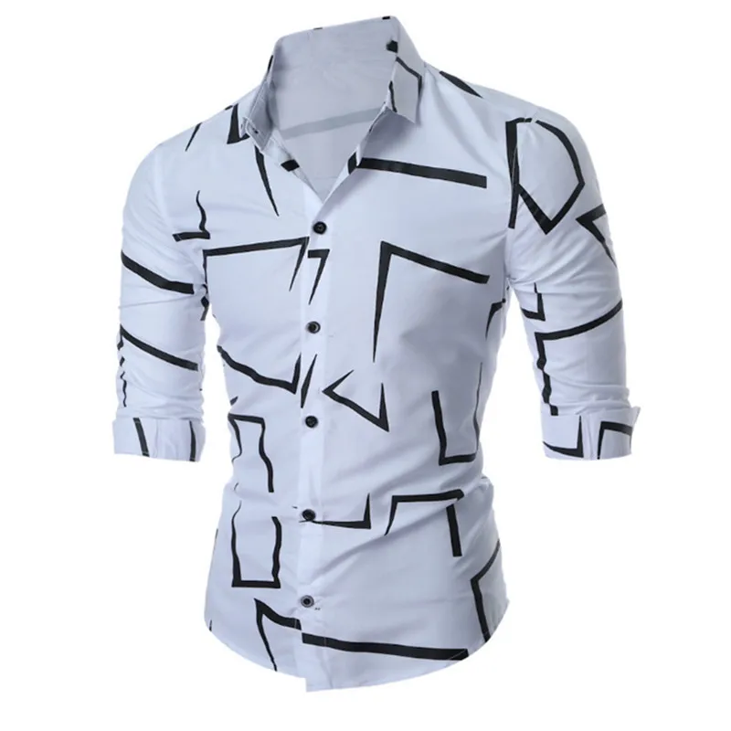 Мужская приталенная рубашка с длинным рукавом, Повседневная Уличная...