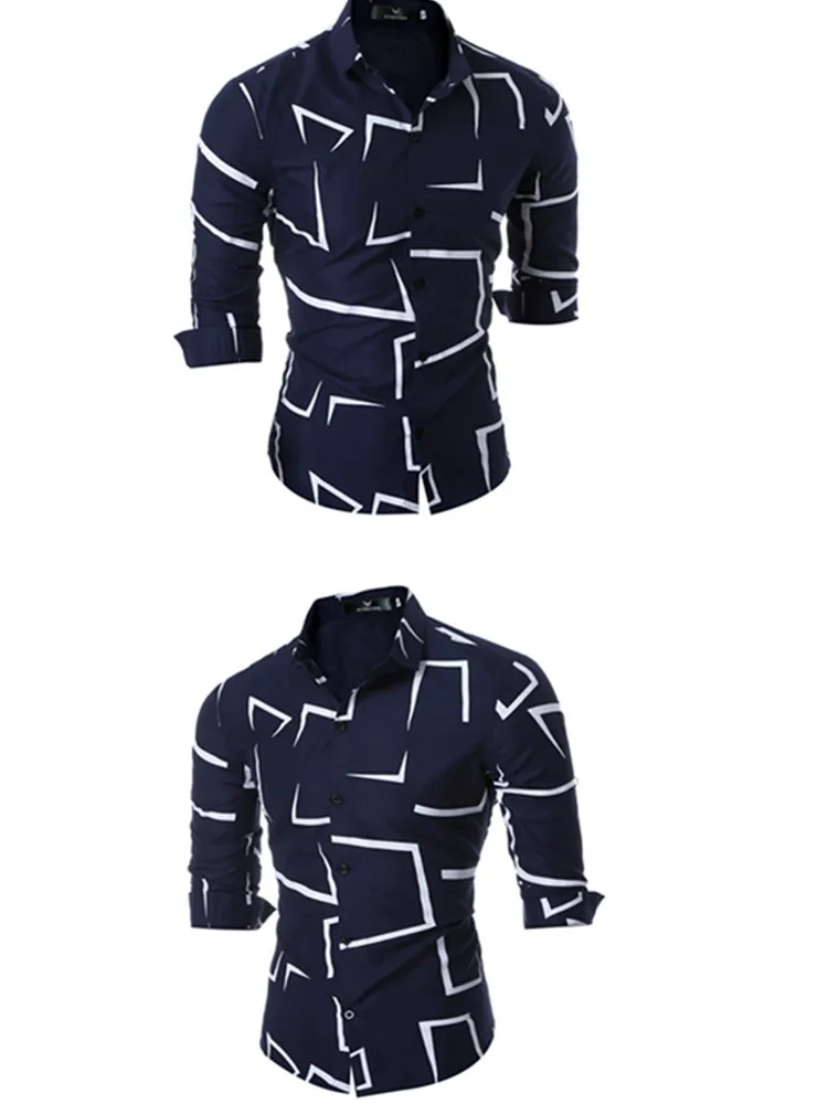 Мужская рубашка с длинным рукавом, Повседневная Облегающая рубашка ...