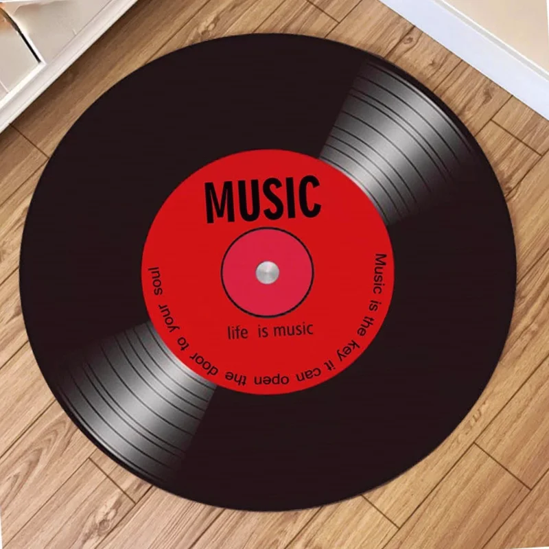 Круглый ковер с рисунком музыки и виниловых пластинок, мягкие ковры...