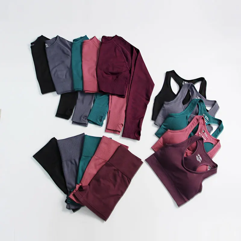 Женский бесшовный костюм для йоги, женские леггинсы с высокой талией, спортивные комплекты с бюстгальтером, спортивная одежда для тренировок, одежда для спортзала, спортивный костюм для фитнеса
