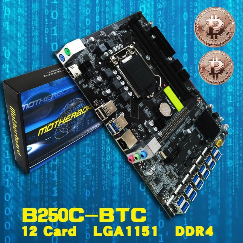 Материнская плата B250C для ЦП BTC Miner, комплект из 12 слотов для видеокарт, Поддержка LGA 1151, Память DDR4 SATA 3,0, USB 3,0, низкая мощность