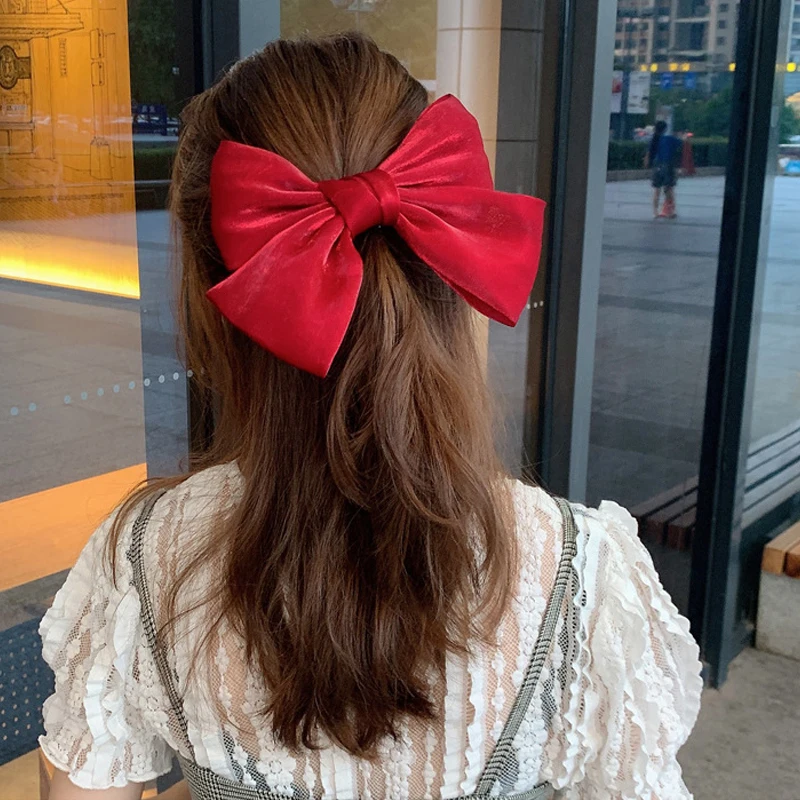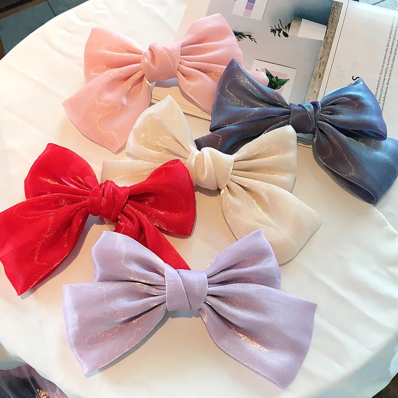 Заколки для волос с большим бантом и искусственной лентой для женщин и девушек, модные атласные заколки для хвоста, заколки, аксессуары для волос