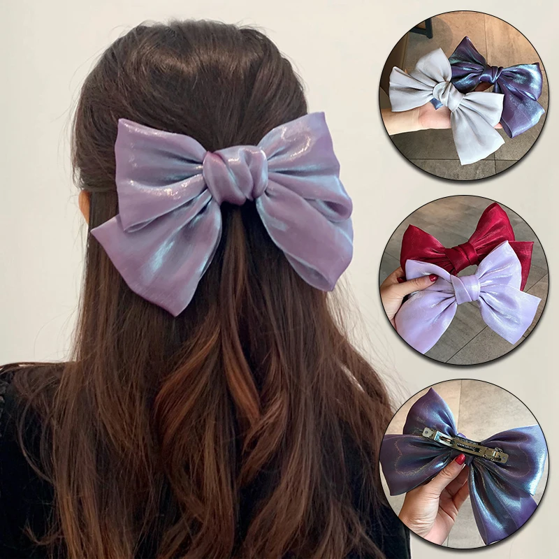 Заколка для волос Женская атласная с большим бантом, Модный зажим для волос с лентой, милые аксессуары для волос