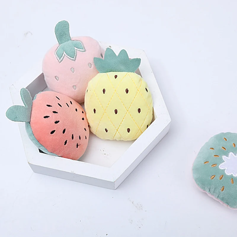 Игрушки для жевания со звуком для щенков и собак, фрукты, овощи, кактус, морковка, киви, пищащие плюшевые игрушки для животных, кошек, домашних животных, 1 шт.