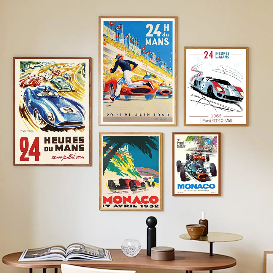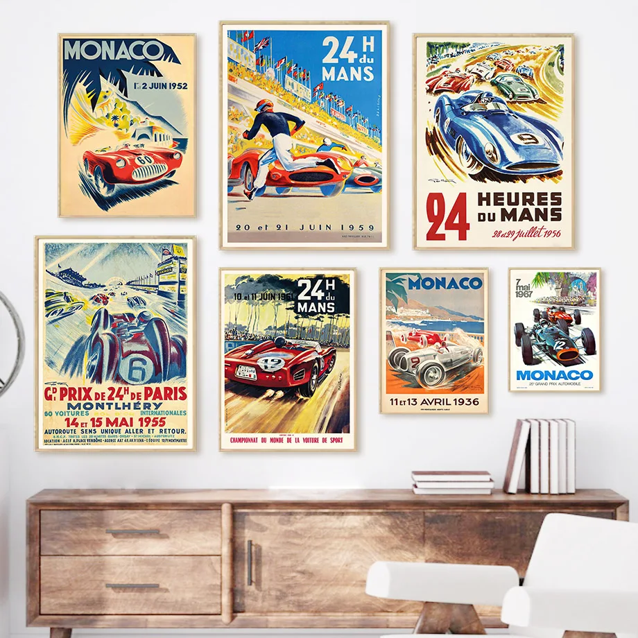 Винтажная Картина на холсте с изображением машины Монако, 24 часа, скандинавские постеры и принты на стену для гостиной