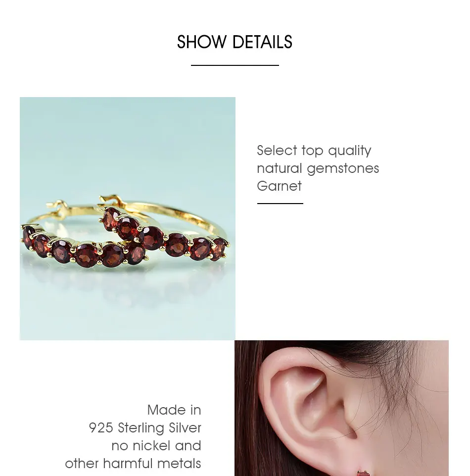 Женские серьги из серебра 925 пробы, с натуральным гранатом