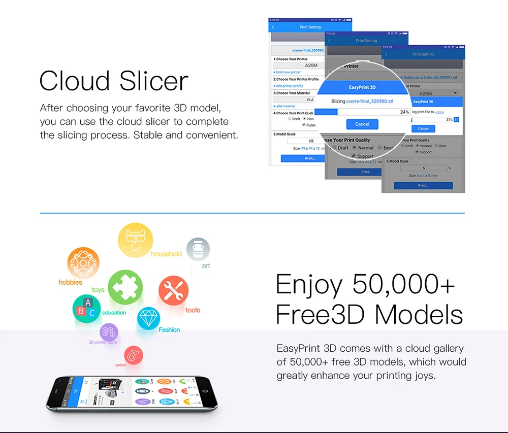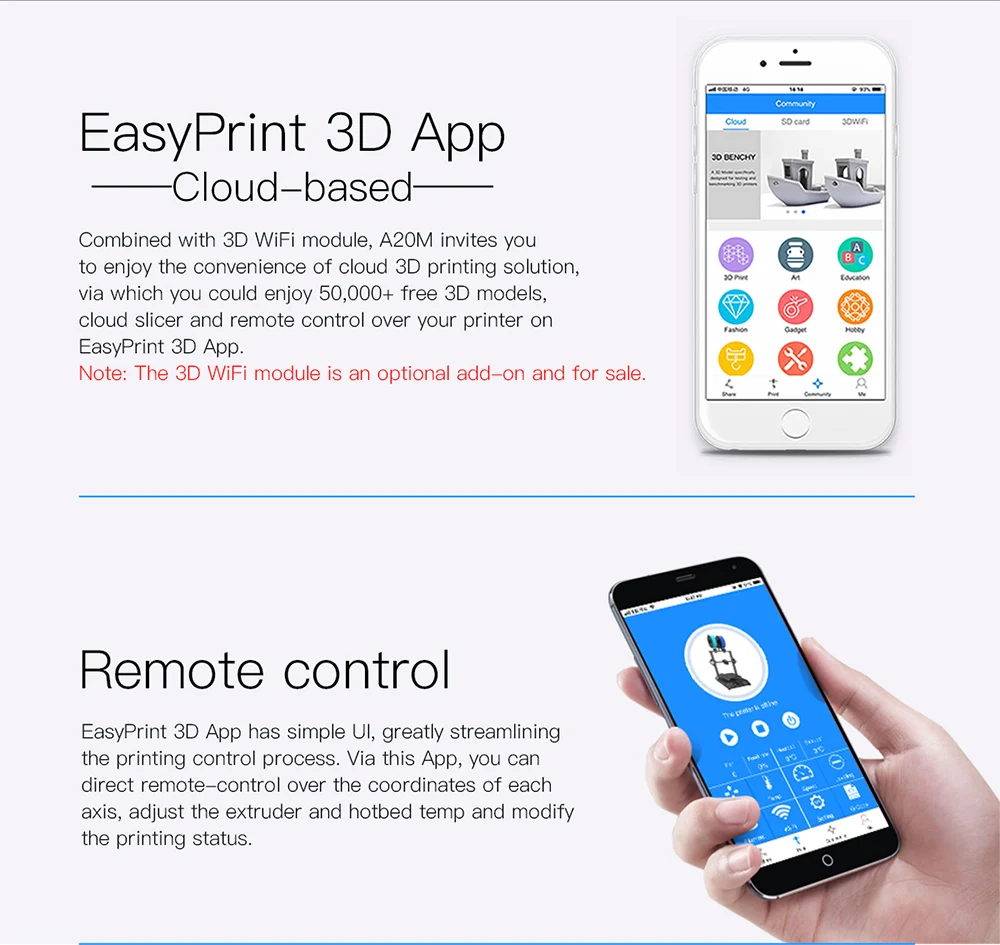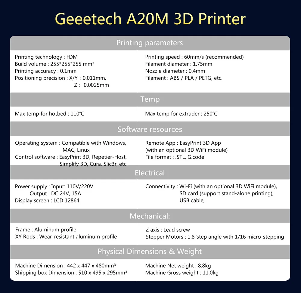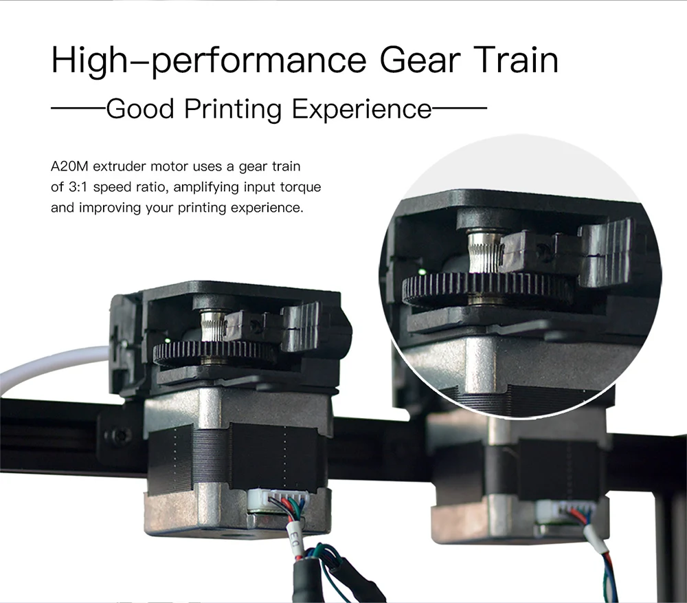 3D-принтер Geeetech A20M, с открытым исходным кодом GT2560, обеспечивает разноцветные объекты и значительно увеличивает срок службы 3D печати. Сохраняя хорошую производительность портфеля Geeetech 3D принтеров, он нацелен на предоставление пользователям качественной печати и удовлетворительного опыта печати.Модульная конструкция позволяет легко построить принтер за 3 шага. Классический комбо белого и черного цветов придает ощущение простоты и совершенства, воплощая стремление Geeetech к качественной продукции.С его объемом сборки 250*250*250 мм ³, и классической Prusa I3 3D printers' козловой структурой, a20M дает лучшую здания платформа и позволяет просматривать особенности принта в 360 ° печать на точность 0,1 мм, он обеспечивает объекты с гладкой поверхностью, четкие углы и прочная структура. Кроме того, A20M поставляется с детектором нити и возможностью прерывания, что значительно увеличивает ваш опыт 3D печати.Его хорошо разработанный экструдер значительно снижает риск засорения или протекания. Крышка экструдера A20M имеет вентиляционную конструкцию 360 °, что значительно увеличивает рассеивание тепла и гарантирует отличное качество печати.Двигатель экструдера A20M использует зубчатую передачу 3:1 коэффициента скорости, усиливая Входной крутящий момент и улучшая ваш опыт печати. Принятие модульной конструкции для экструдера проводки, A20M позволяет легко обменять провод.V-образные колеса и рельсы на каждой оси, изготовленные из износостойкого алюминиевого профиля, могут в большой мере уменьшить шум печати и предложить вам тихую среду 3D печати.Кроме того, плата управления A20M поддерживает автоматическое выравнивание, дополнительное дополнение. Просто подключите датчик автоматического выравнивания и отрегулируйте соответствующие параметры. Экономия усилий ручного выравнивания.Программное обеспечение Geeetech EasyPrint 3D host обеспечивает прямую платформу для управления принтером и завершения процесса нарезки. Легко и удобно как для начинающих, так и для профессионалов.В сочетании с 3D модуль Wi-Fi, A20M приглашает вас, чтобы наслаждаться удобством облако 3D решение для печати, с помощью которого вы можете наслаждаться 50000 + бесплатная 3D модели, облачный слайсер и пульт дистанционного управления над вашим принтером в приложении EasyPrint 3D. Это само разработанное приложение является отзывчивым и удобным.