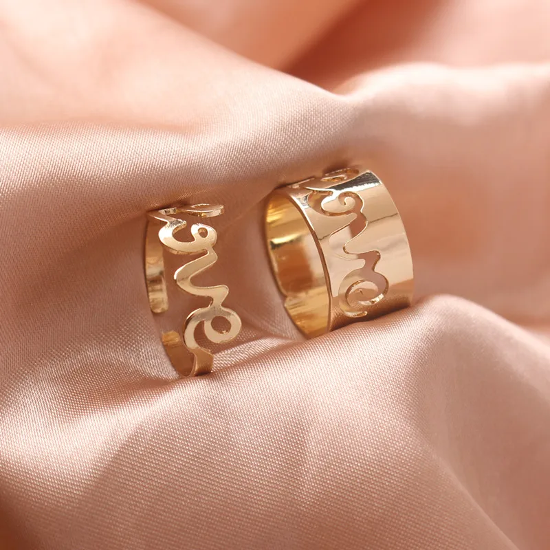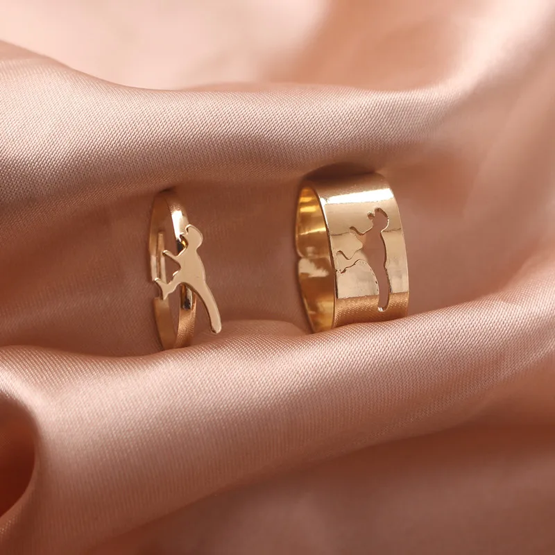 Парные кольца золотого цвета, 2 шт.компл., комплект женских открыты...
