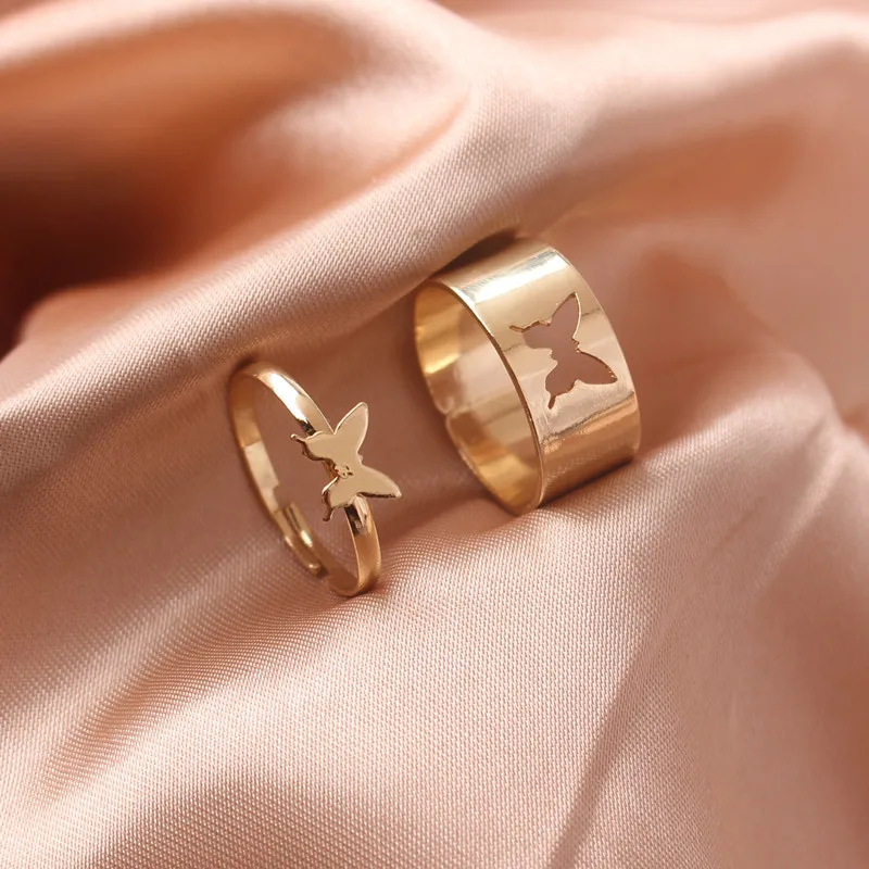 Женские кольца с бабочкой, 2 шт.компл., открытые кольца в форме динозавра, золотого и серебряного цветов, регулируемые обручальные кольца для пар
