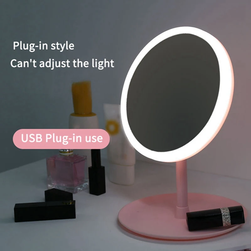 Светодиодное зеркало для макияжа светильник кой, регулируемое затемнение, USB косметическое зеркало с хранилищем, настольное вращасветильник для туалетного столика