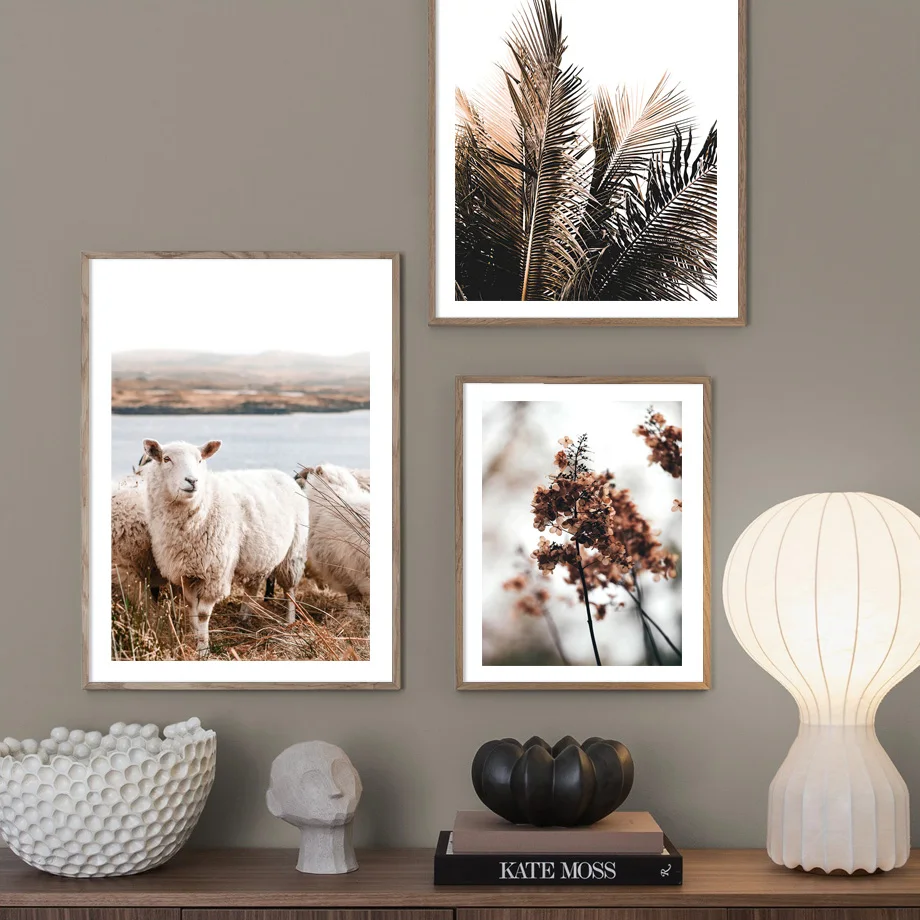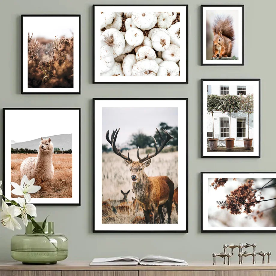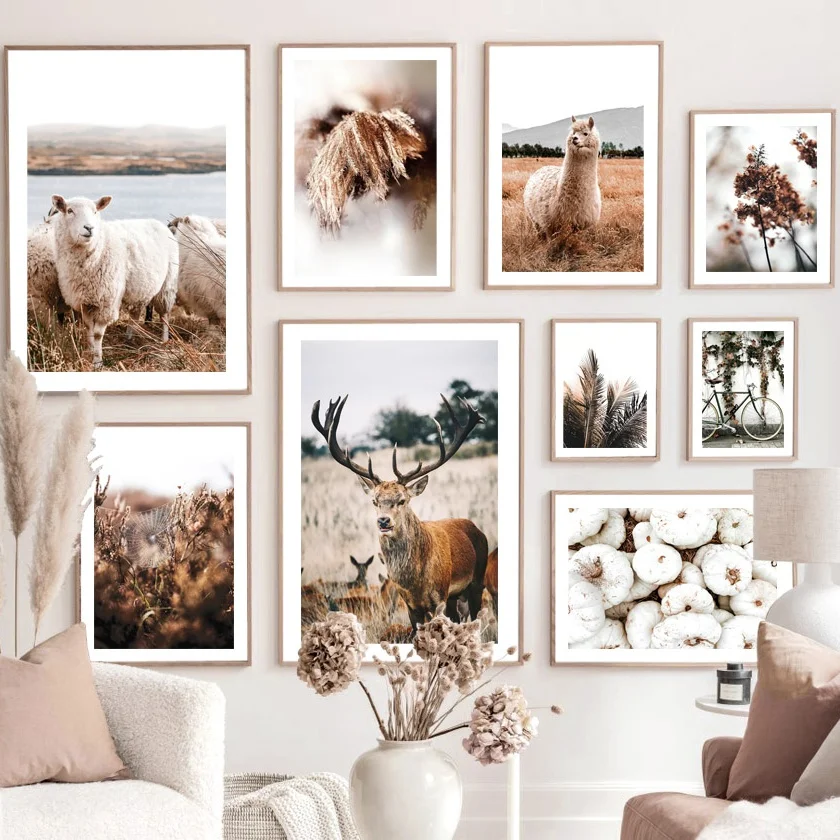 Скандинавский плакат с изображением пальмового листа травы овец оленей Альпака Тыква велосипед настенная живопись холст осенние картины для декора гостиной