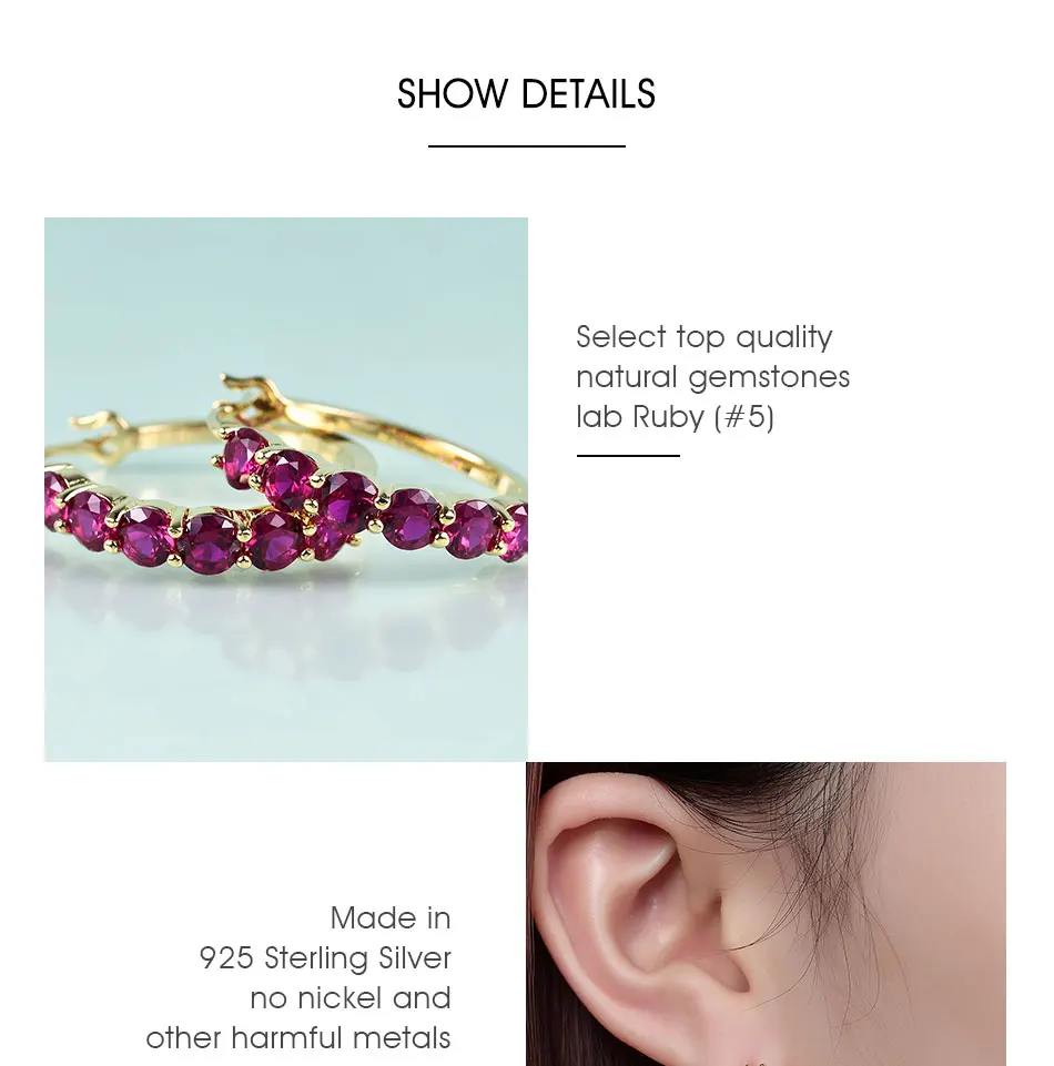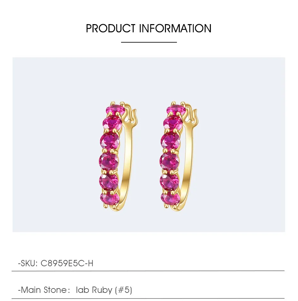 Серьги-кольца женские круглые из серебра 2021 пробы с рубином