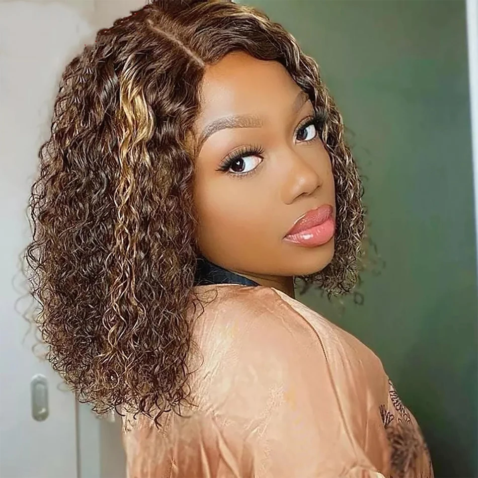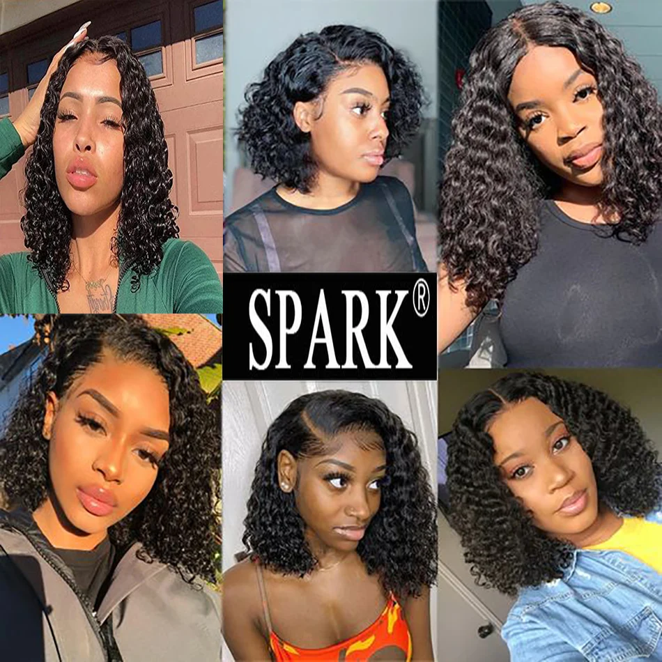 4x4 парики с закрытием Боба, глубокая кудрявая кружевная передняя часть, парики из человеческих волос, глубокая волна, Короткие парики Боба для черных женщин, бразильские парики с искровыми волосами