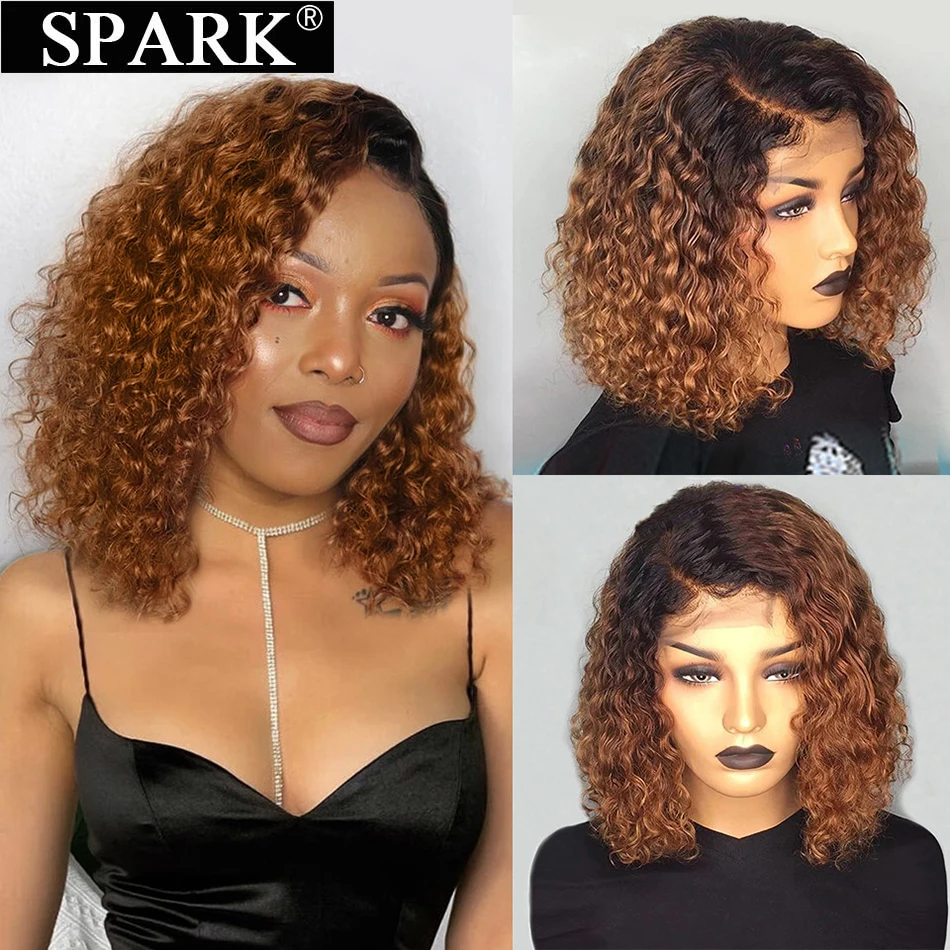 SPARK 1B30 кудрявые человеческие волосы парик Боб кружева человечес...