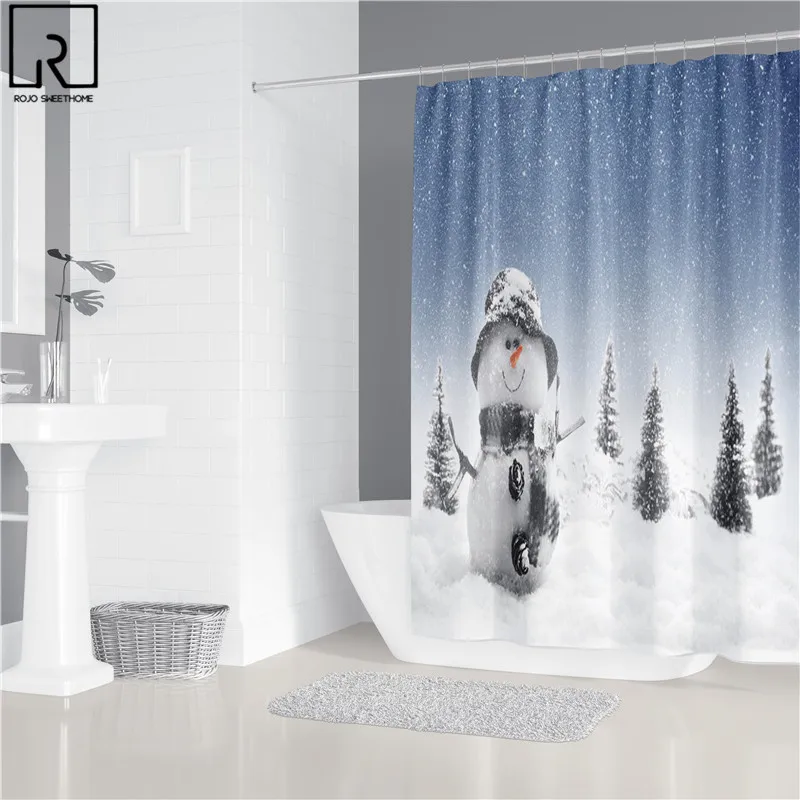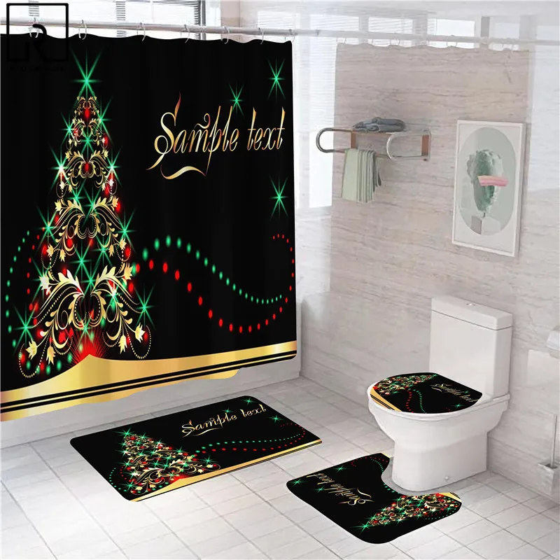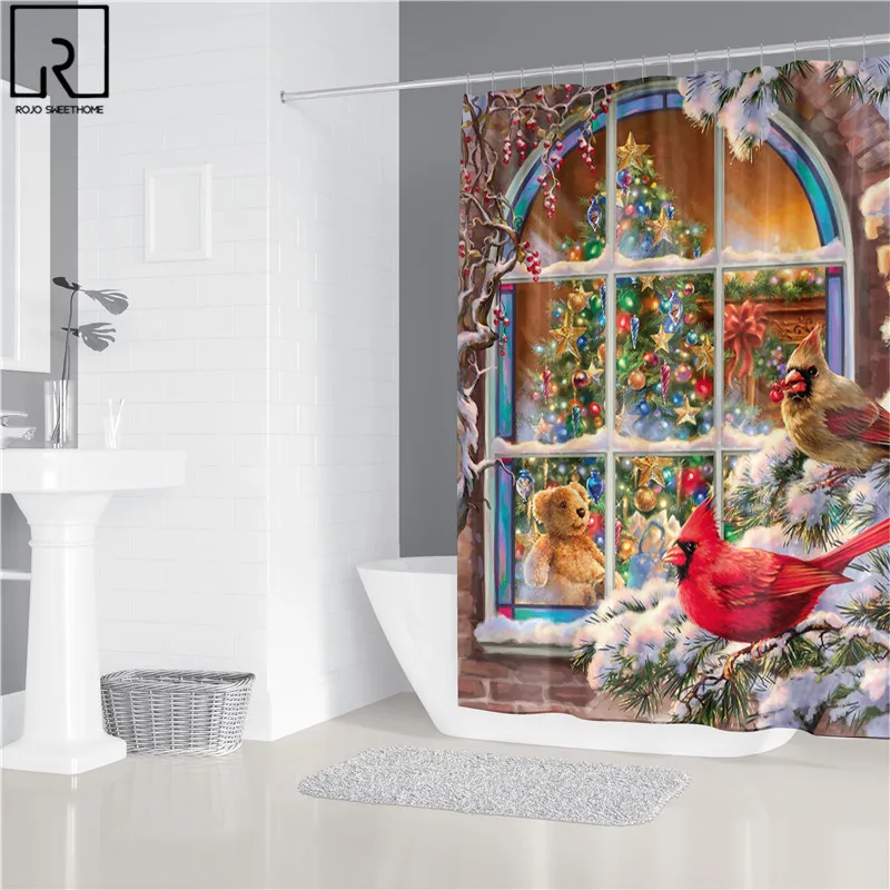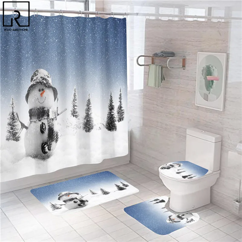 Реалистичная Рождественская оконная занавеска для душа из полиэстера, праздничное украшение для ванной комнаты, коврик для туалета и ванной, мягкие коврики, ковер, товары для дома