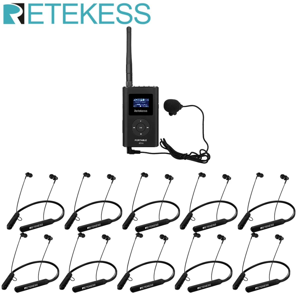 RETEKESS 1 fm-передатчик FT11 + 10 шт. fm-радио приемник TR108 Bluetooth спортивные наушники для обучения церковным митингам