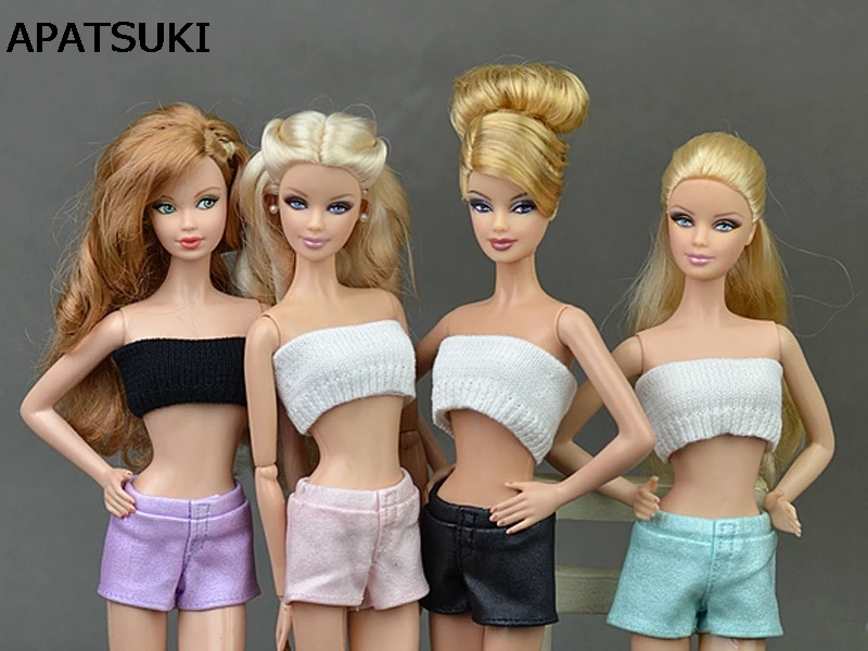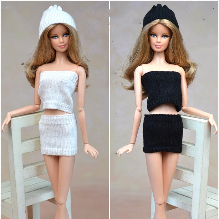 Модный черный белый свитер без бретелек, верхняя одежда для куклы Барби, вязаные аксессуары для кукол 16 BJD, можно вязать как юбку, верх, шляпу