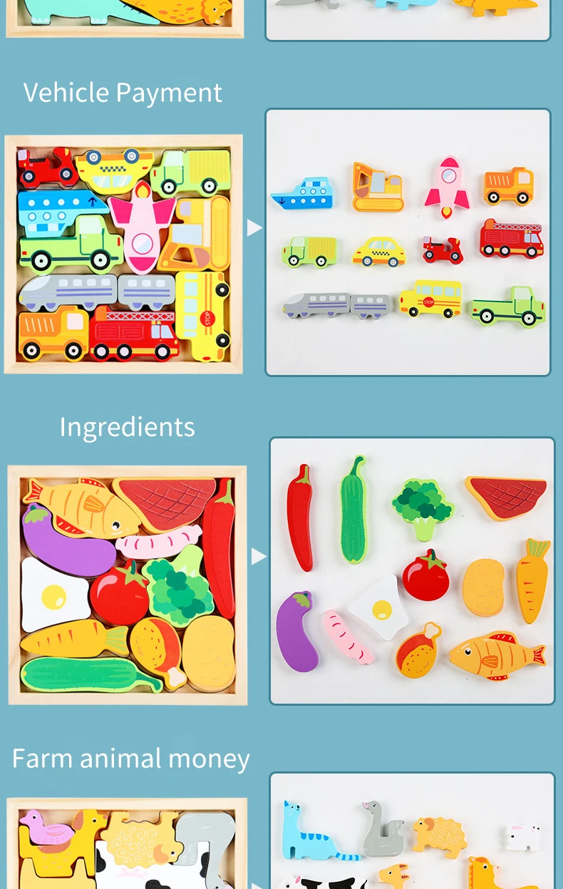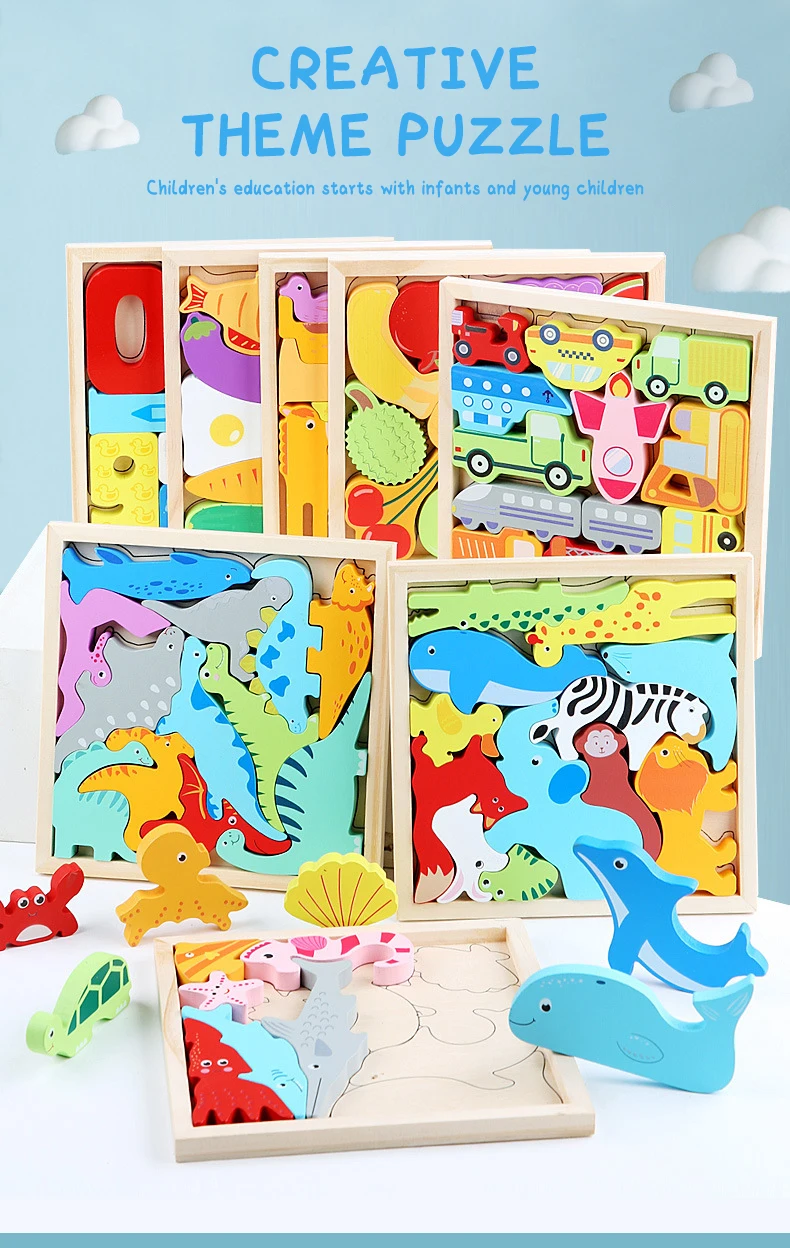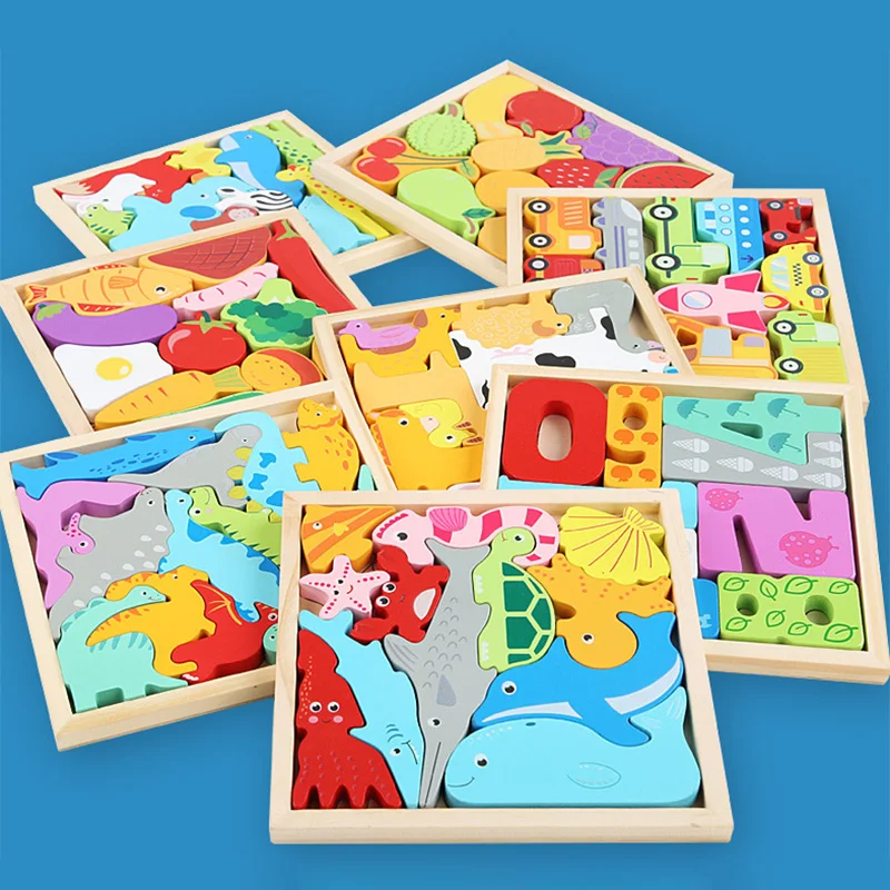 Деревянный мультяшный 3D-пазл Монтессори, когнитивные совпадения, и...