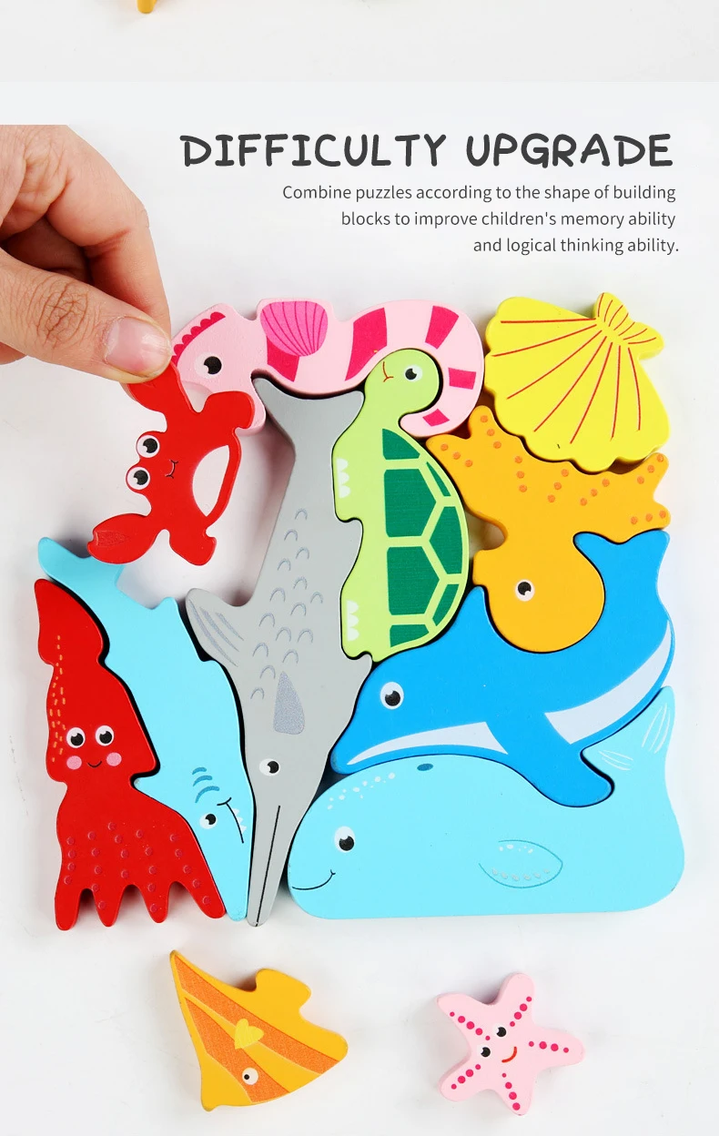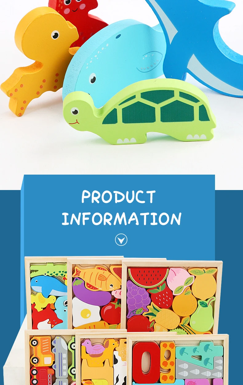 Блок мультяшных животных трехмерная головоломка детская деревянная ...