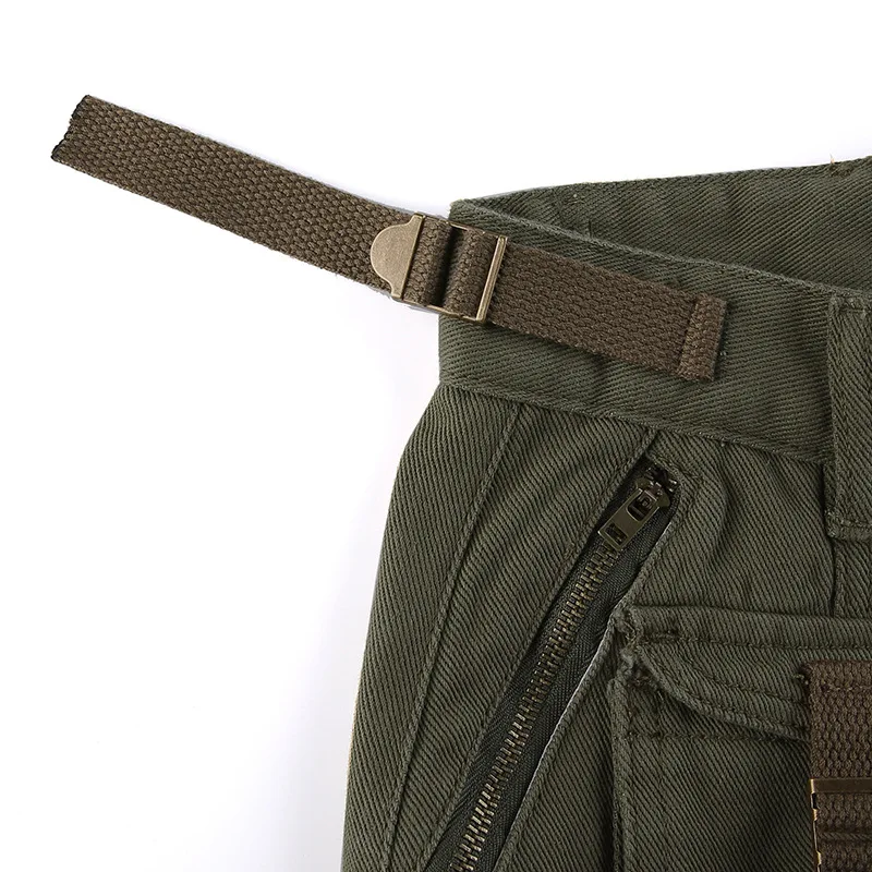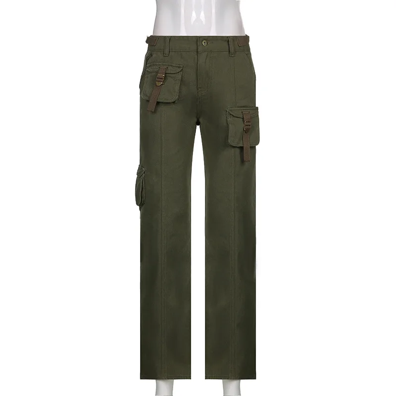 Зеленые ретро-джинсы-карго Y2K в стиле гранж, мешковатые женские ча...