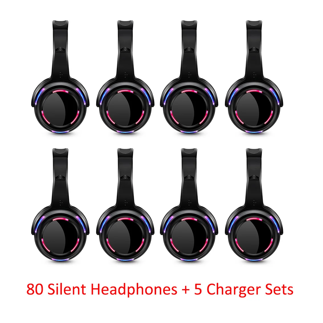 Профессиональные бесшумные диско-наушники со светодиодной подсветкой всего 80 шт. в комплекте с 5 шт. профессиональных зарядных наборов