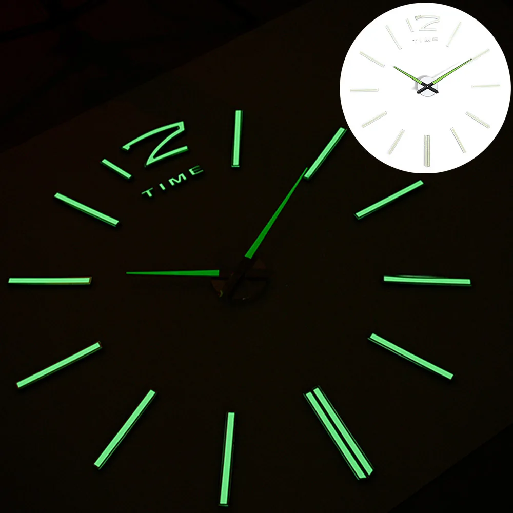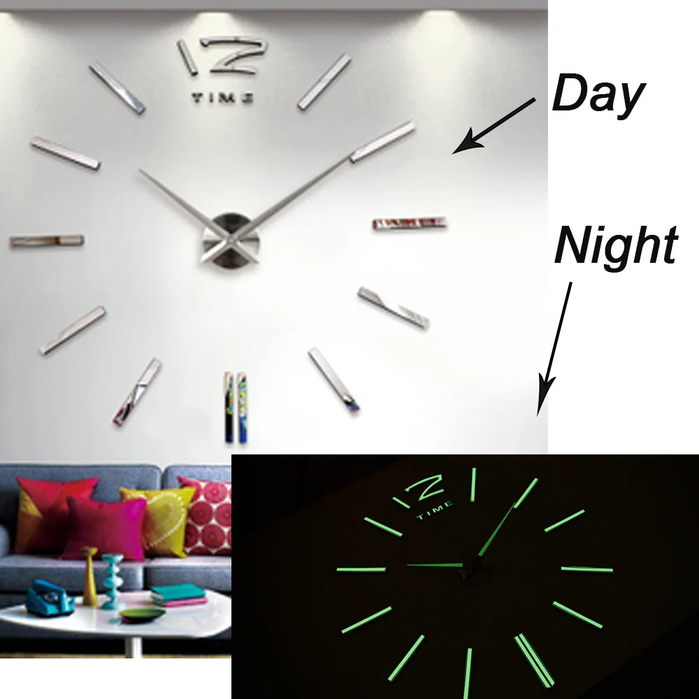 3D настоящие большие настенные часы, зеркальные наклейки, сделай сам, гостиная, домашний декор, светящиеся часы, поступление, кварцевые большие часы 5