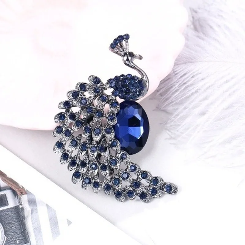 Модные стразы с синими кристаллами броши в форме павлина для свадебной помолвки...
