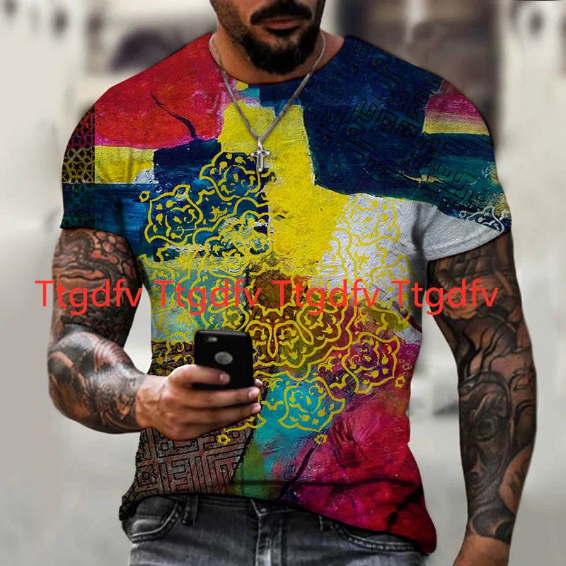 Новинка 2021, Мужская Европейская и американская мода, уличная модная повседневная футболка, летний топ с коротким рукавом, одежда с 3D принтом
