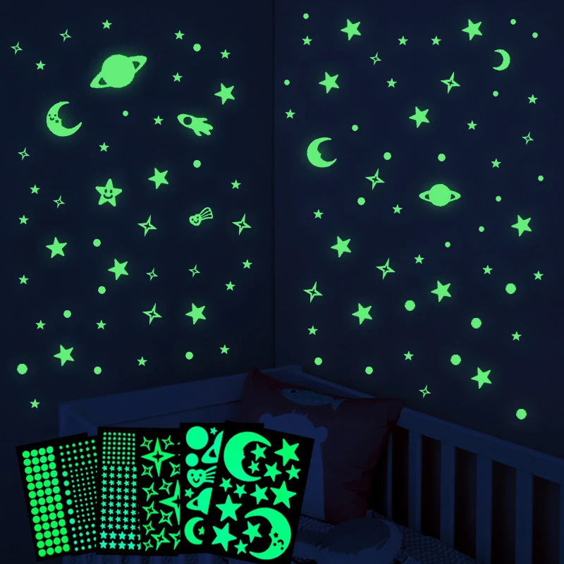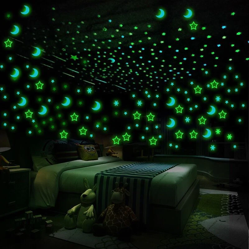 Светящиеся Настенные наклейки 3D точки Звезды Луна и Вселенная Светящиеся в темноте наклейки для спальни потолочное украшение Сделай Сам детская комната Домашний декор