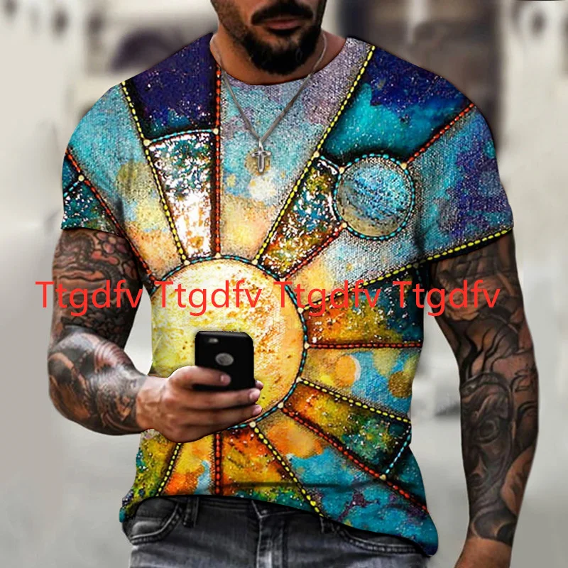 Футболка мужская с коротким рукавом, повседневный топ с принтом зем...