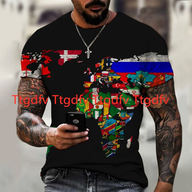 Мужская толстовка с коротким рукавом, футболка с 3D принтом карты м...