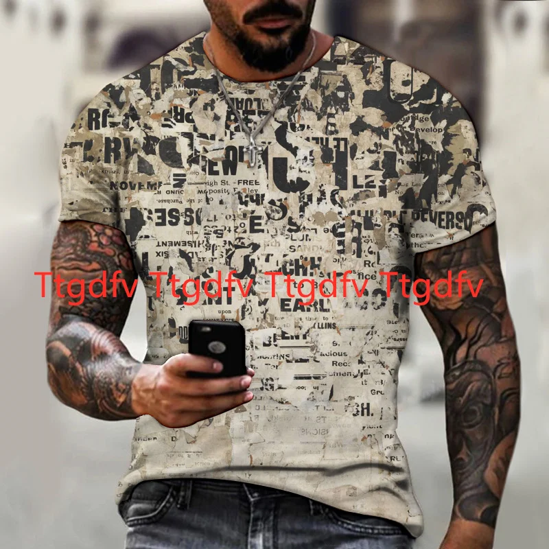 Футболка мужская с 3D-принтом граффити, модная дышащая объемная фут...