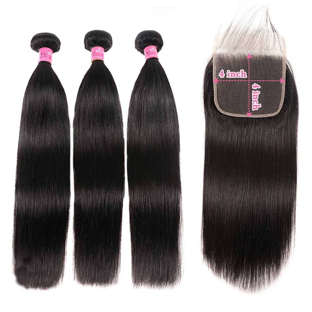 Неповрежденные бразильские прямые волосы, 4 пряди и застежка, 8-36 ...