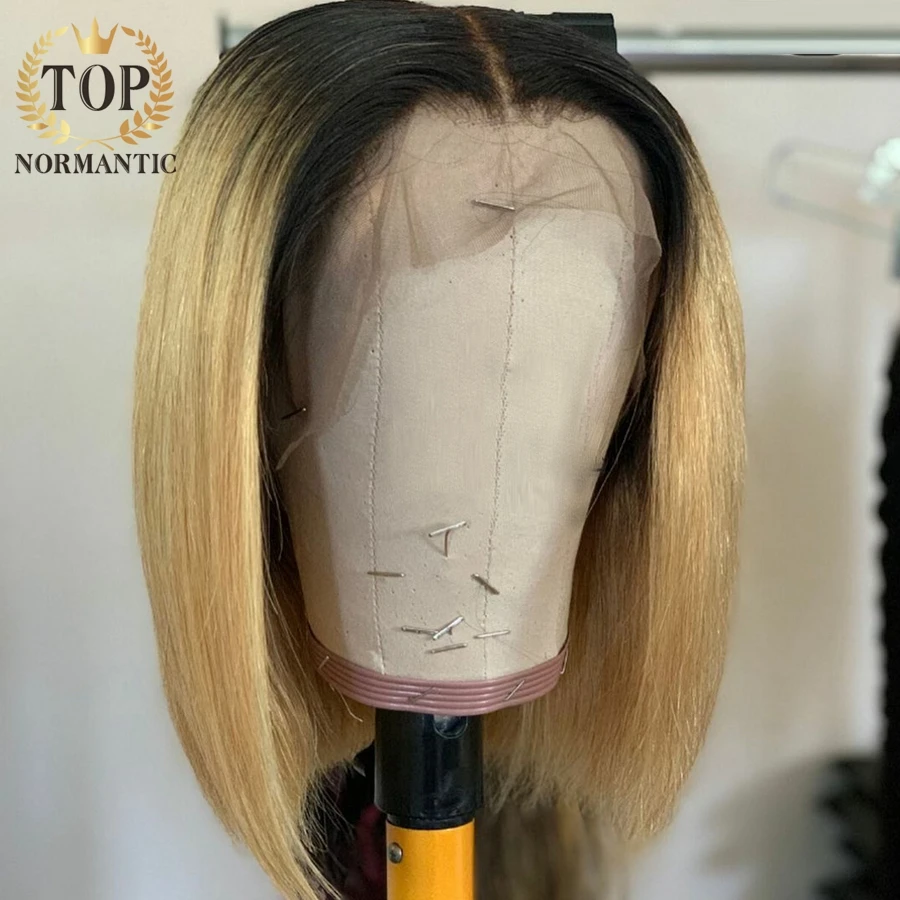 Topnormantic 1B27 цвет шелковистые прямые боб парики для женщин Remy бразильские человеческие волосы парик с детскими волосами