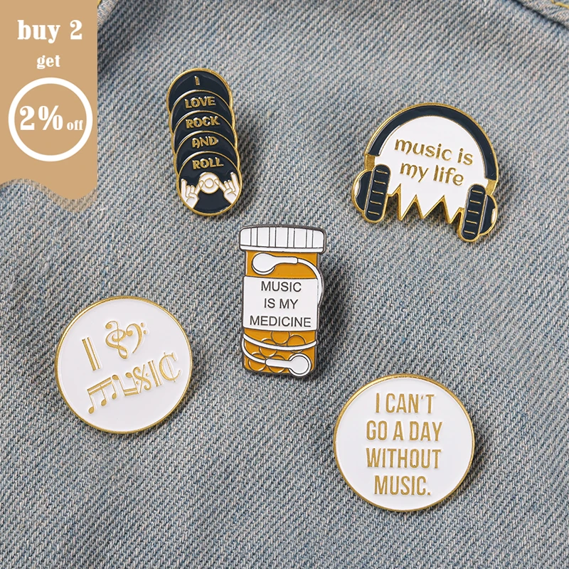 Эмалированные булавки Музыка-моя жизнь, гарнитура в стиле рок-н-рол...
