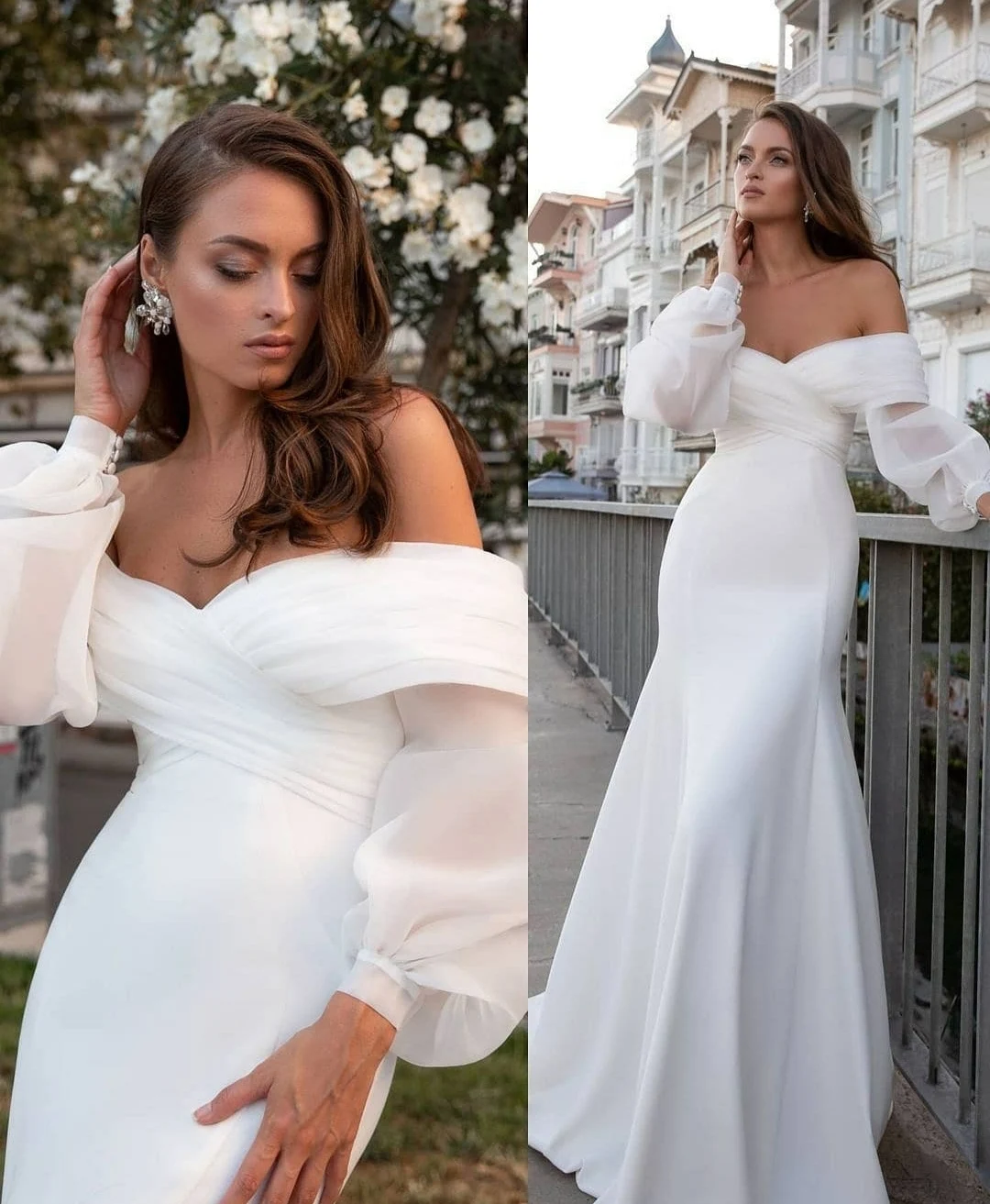 Элегантные Свадебные платья с длинным рукавом и открытыми плечами, эластичный крепированный корсет-русалка, халаты на спине, свадебное платье для женщин
