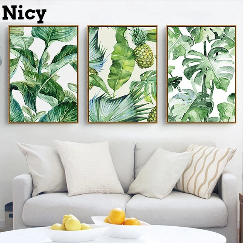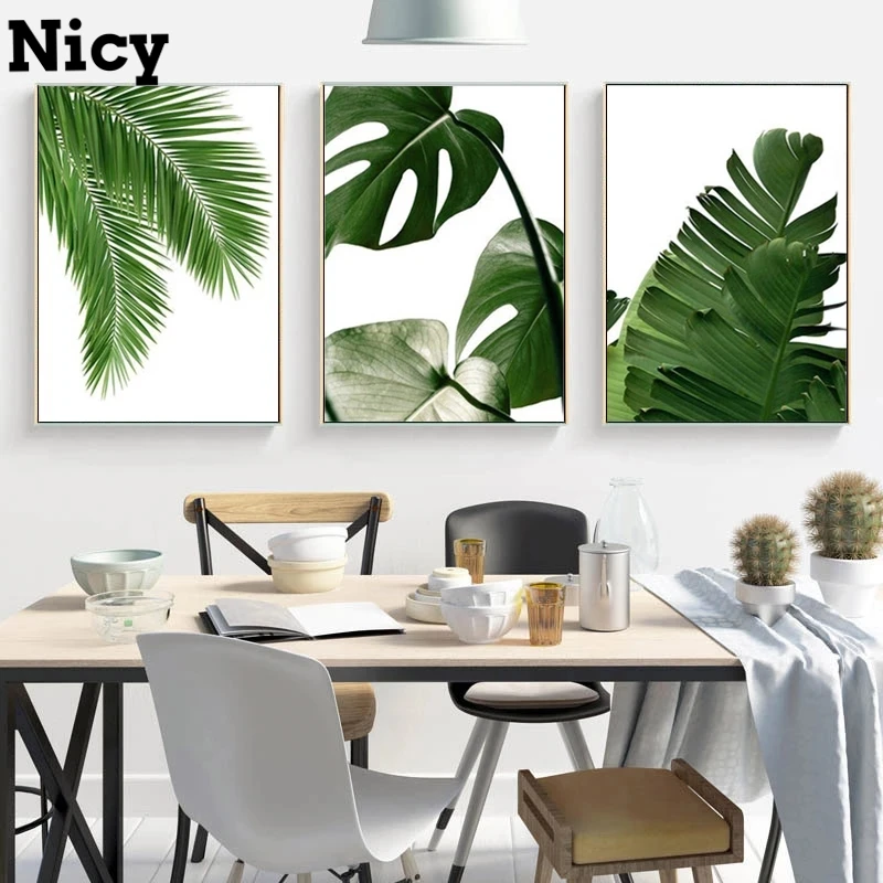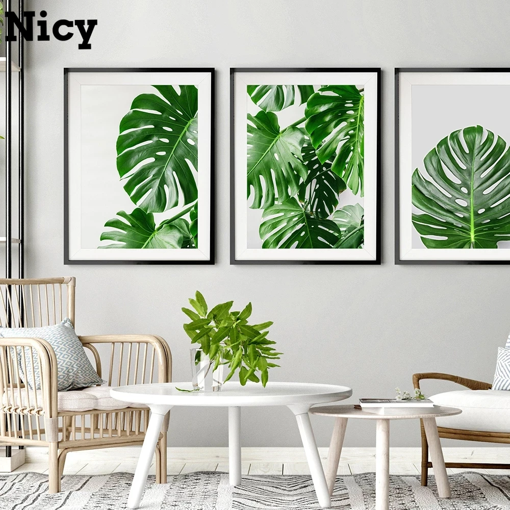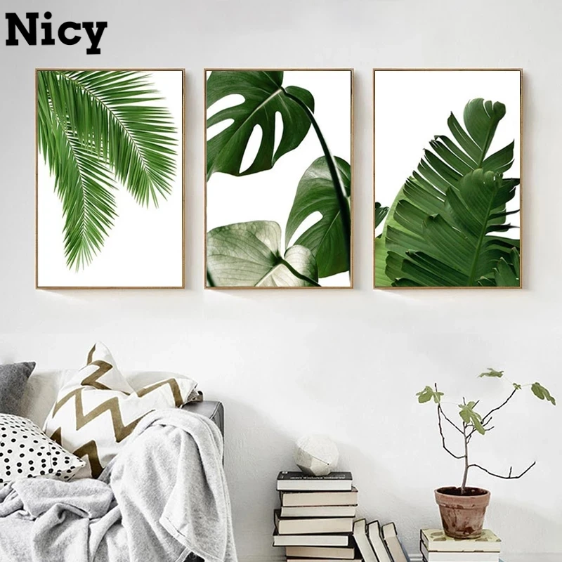 Скандинавский стиль зеленые тропические листья настенная Картина на холсте растения скандинавские плакаты и принты настенные картины для гостиной