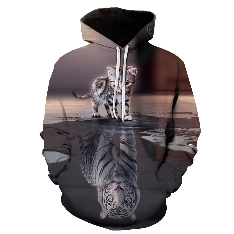 Мужская толстовка с анималистическим принтом, с капюшоном и длинными рукавами