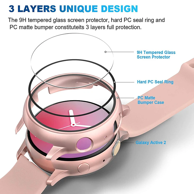 Стекло + чехол для Samsung Galaxy watch active2, 44 мм, 40 мм, полное покрытие, бампер + защита экрана, Galaxy watch active 2, 44 мм, 40 мм