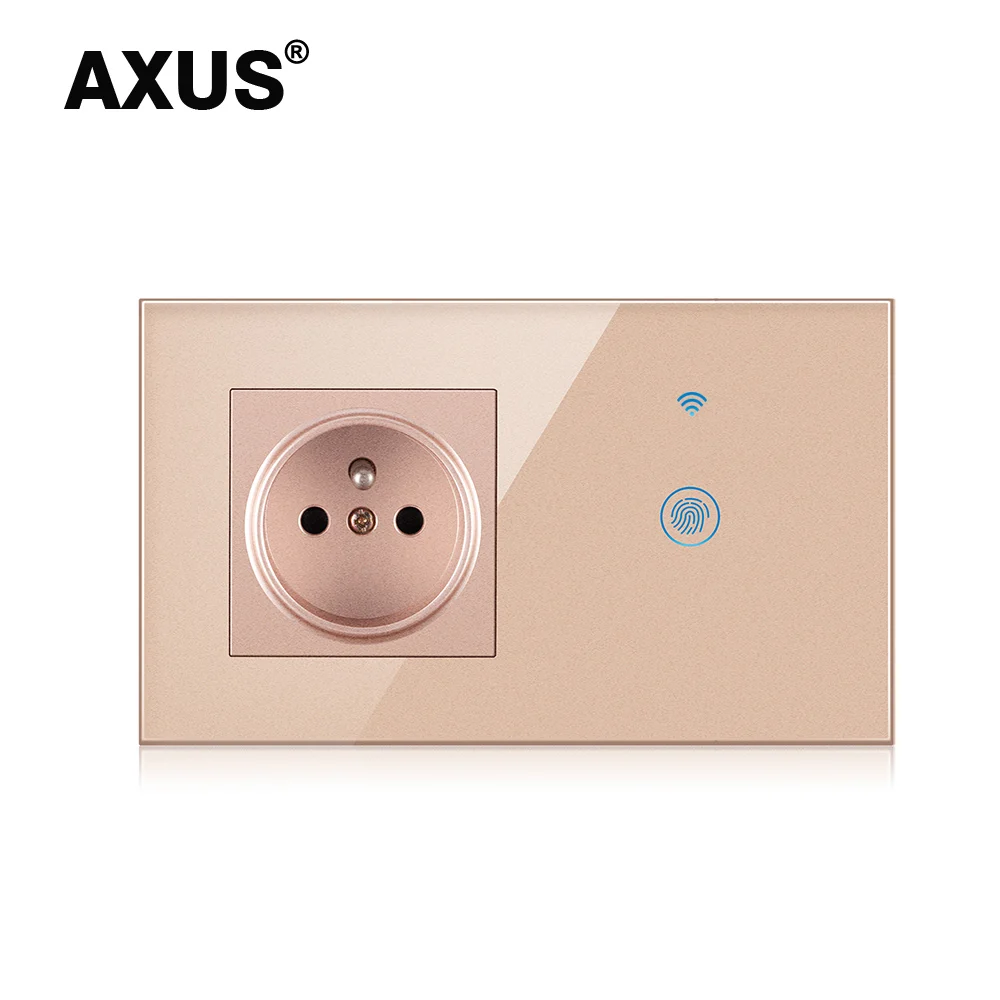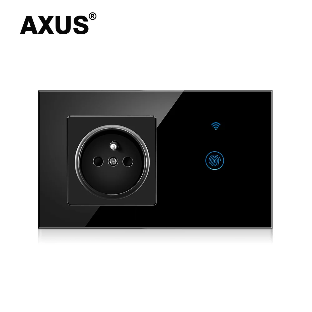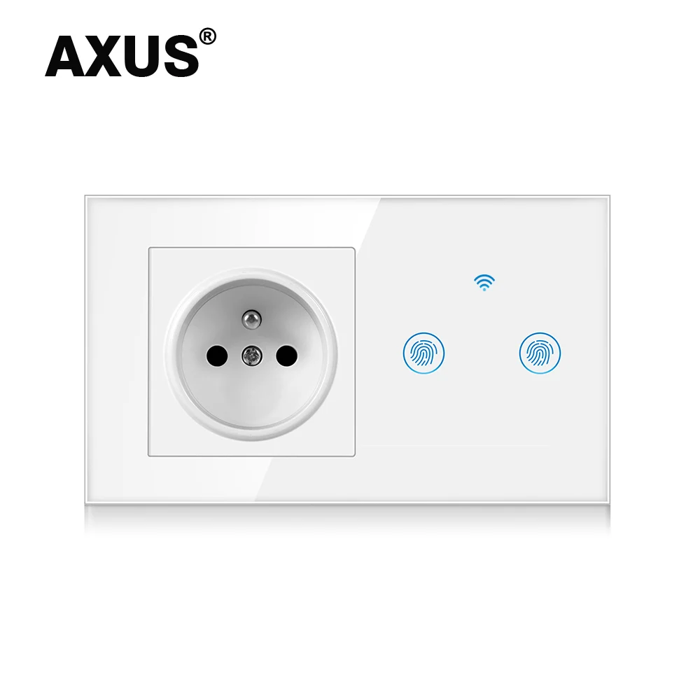 Настенный сенсорный выключатель питания для умного дома ЕС TUYA с комбинированной розеткой, панель из хрусталя 16 А, французская розетка, штекер 146*86 мм, Заземление