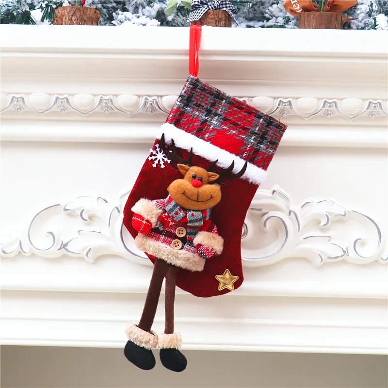 Новинка 2021, лидер продаж, большие чулки, подарочные носки из ткани с Санта-Клаусом, Рождественская прекрасная сумка для детей, камин, елка, Рождественское украшение