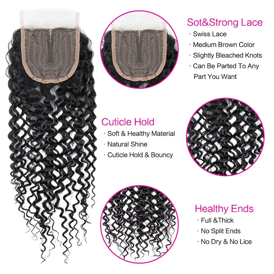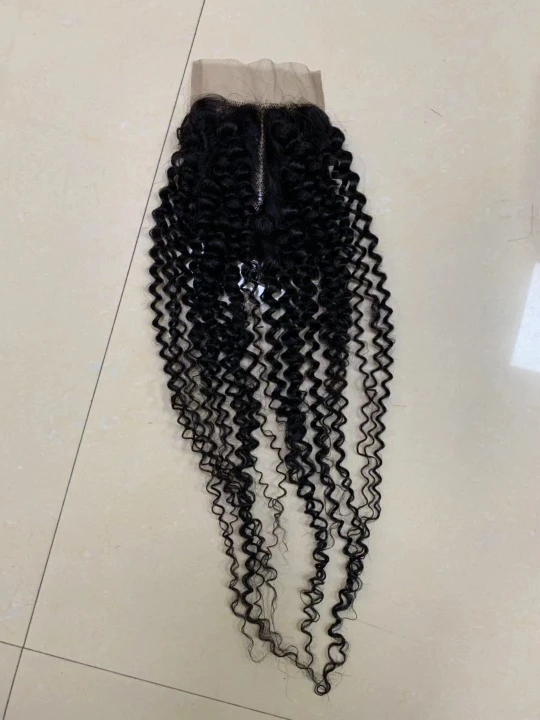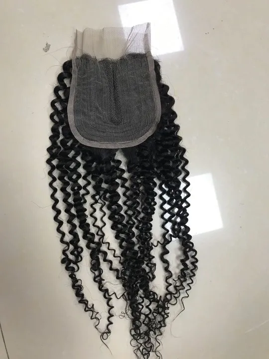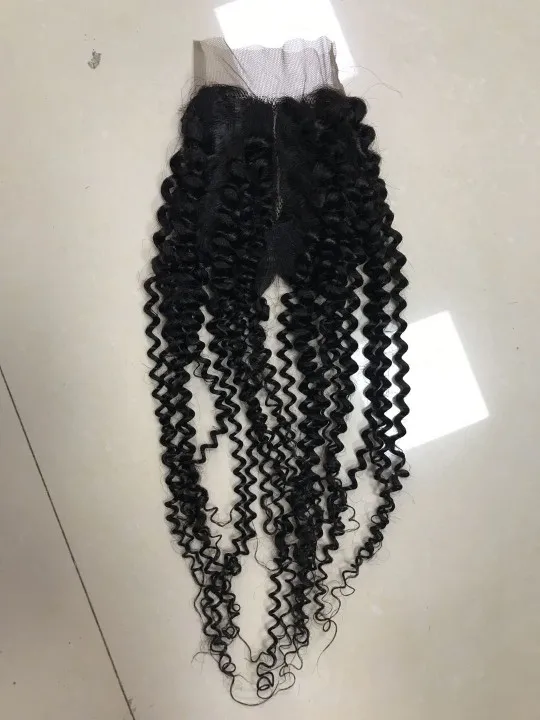 4x4 Курчавые Кудрявые человеческие волосы застежка 4X4 кружевная за...