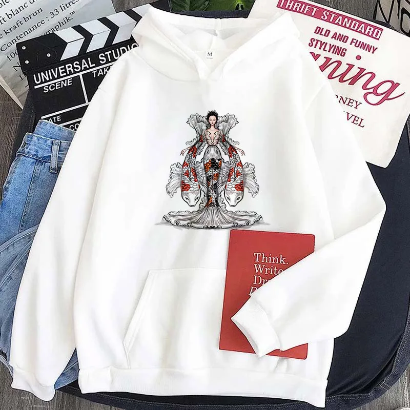 Новинка 2021, зимние белые толстовки с принтом дракона, свитшоты, ж...