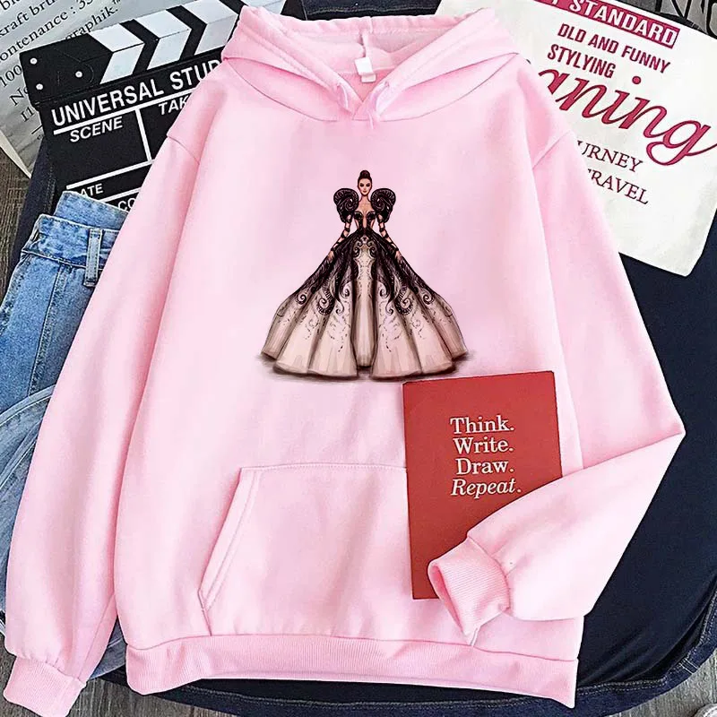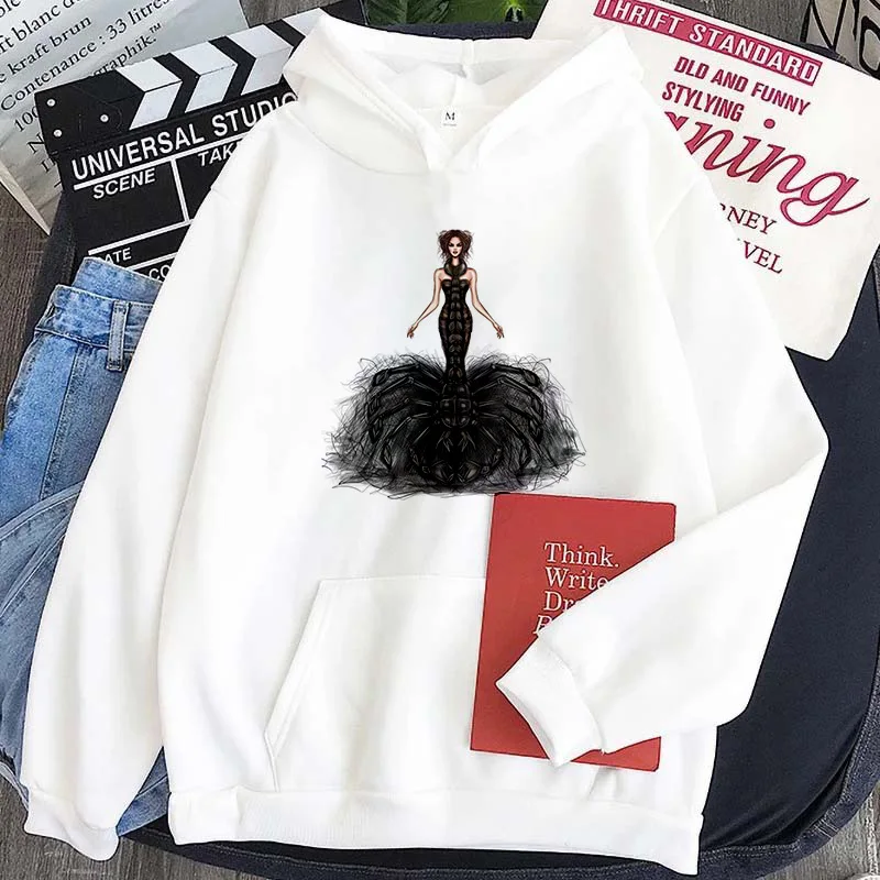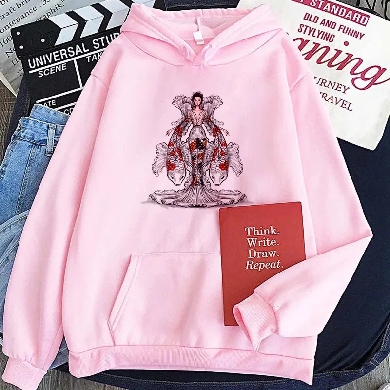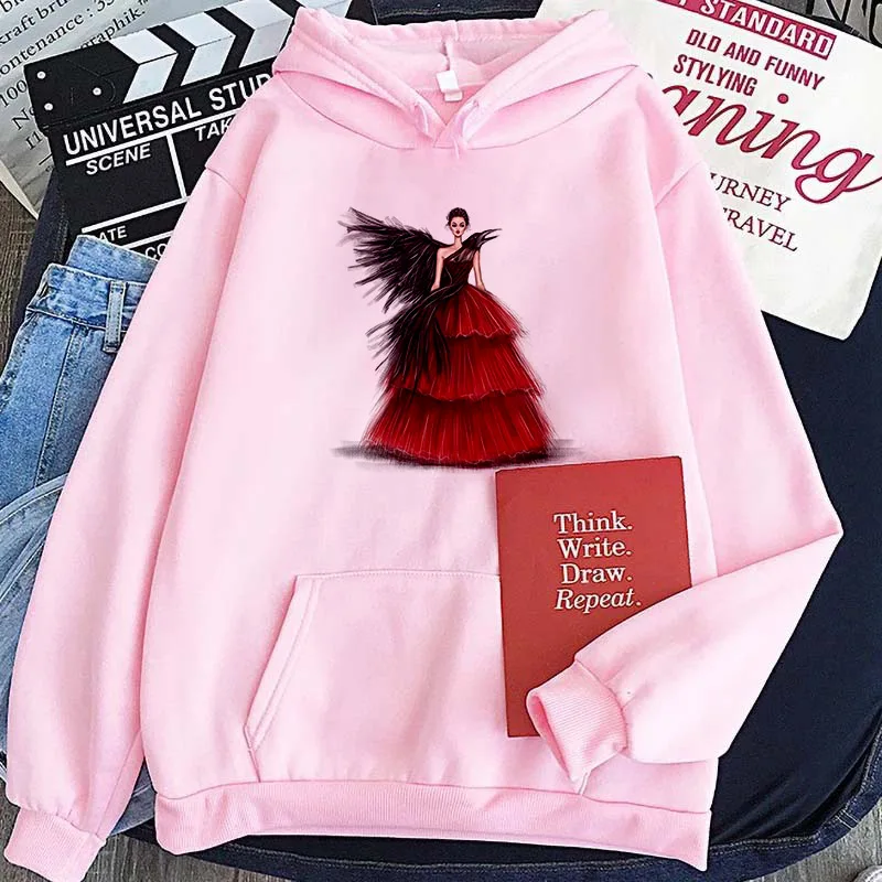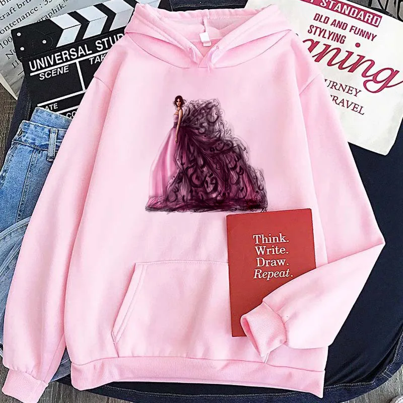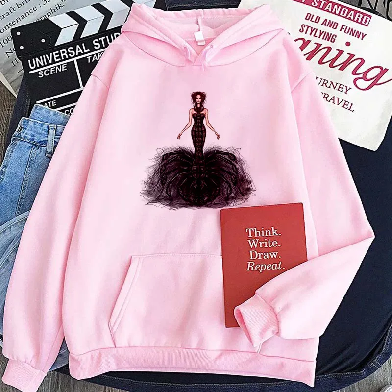 Женские толстовки в стиле Харадзюку, элегантные уличные пуловеры розового и белого цветов с красивым принтом, осенне-зимние толстовки с капюшоном, женская одежда