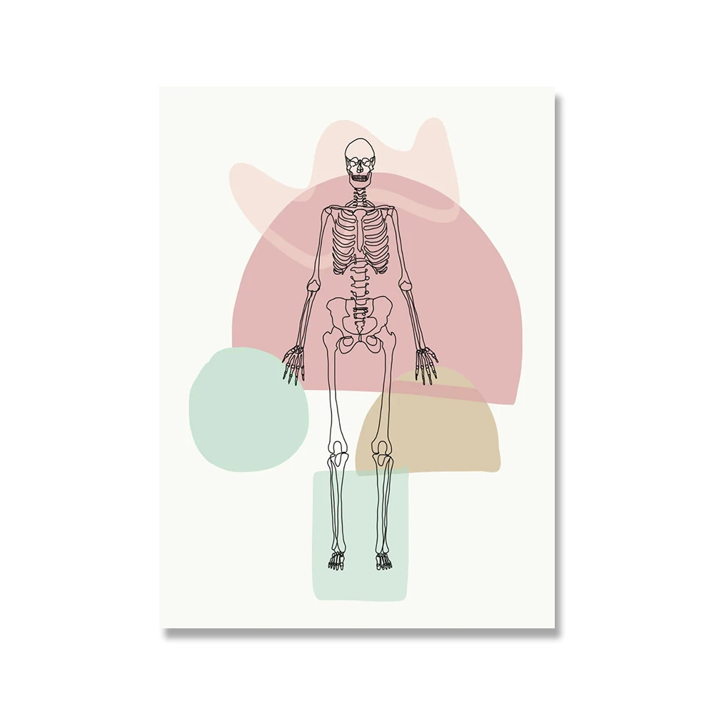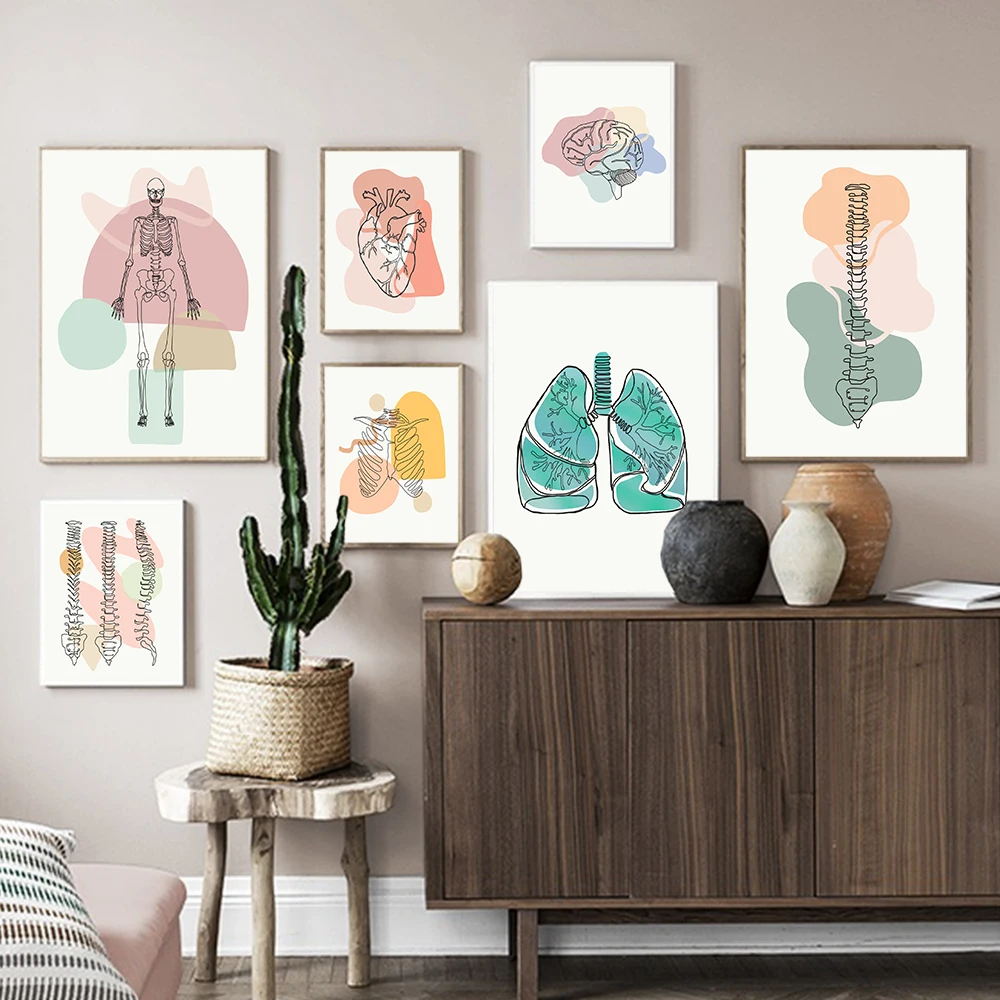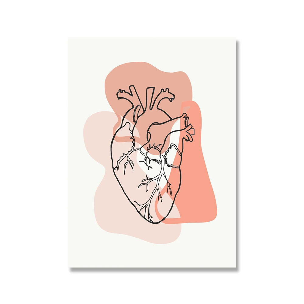 Минималистичный человеческий анатомический рисунок на холсте Рисунок Скелет сердце легкие грудная Анатомия абстрактная линия печатный плакат медицинский настенный Декор
