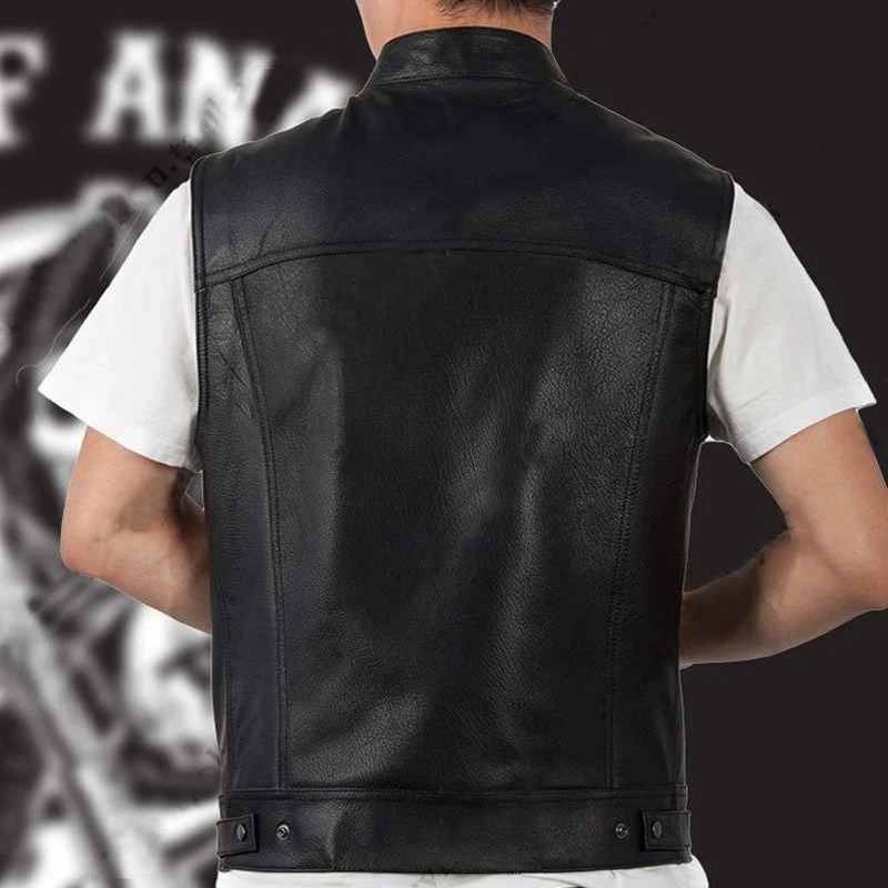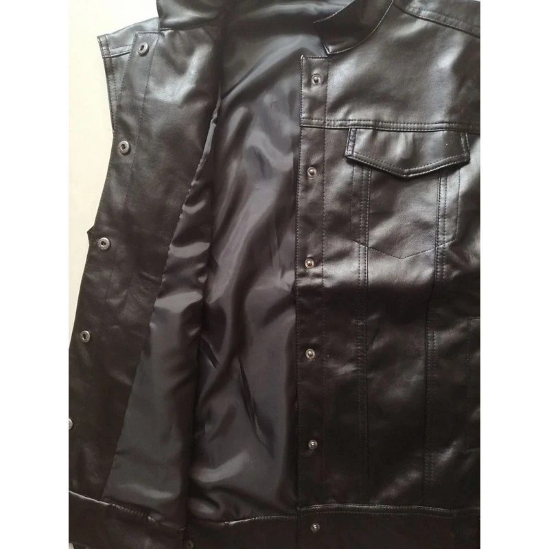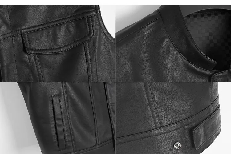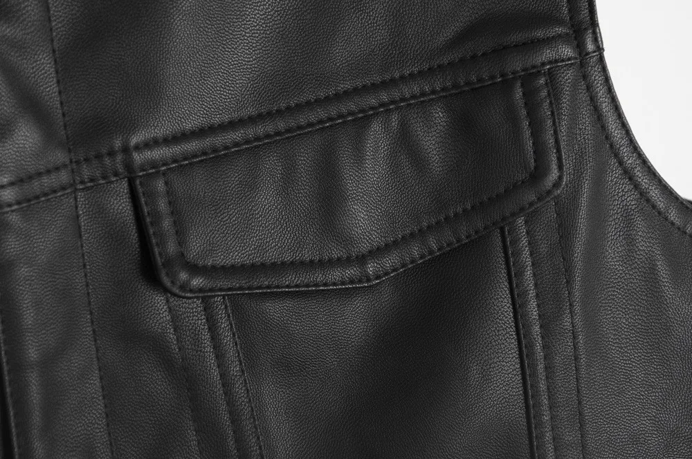 Жилет мужской Байкерский кожаный, без рукавов, с несколькими карманами, размера плюс