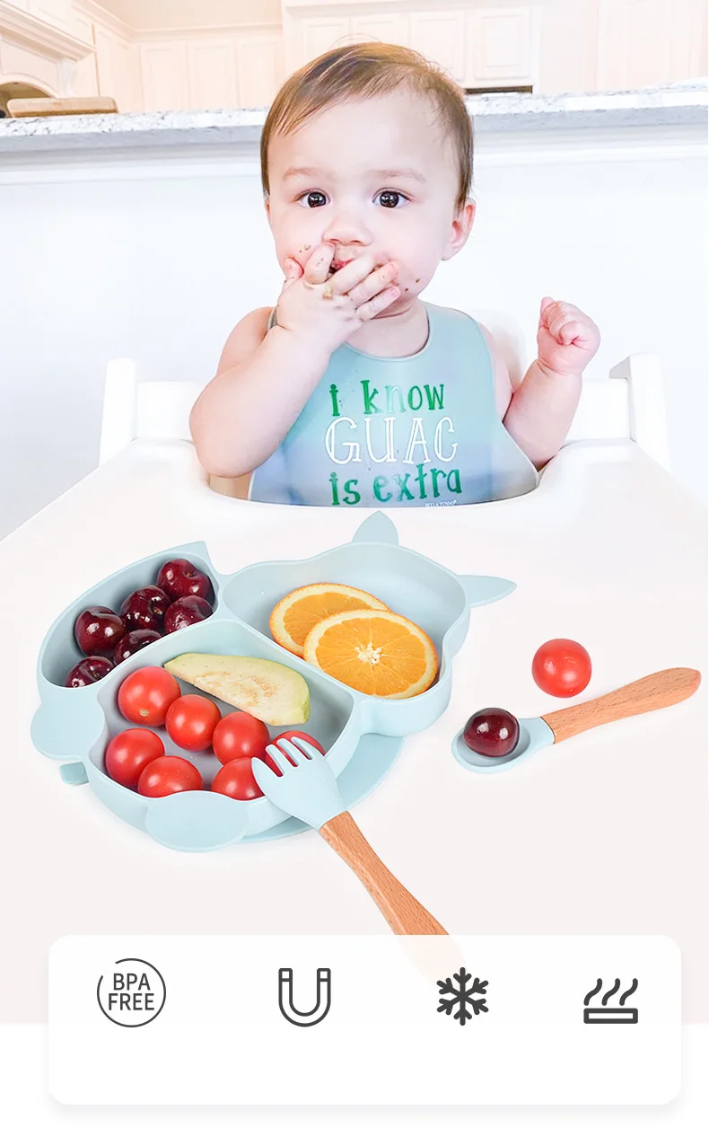 Детская силиконовая Тарелка на присоске, с ложкой, 8 шт.компл., наб...