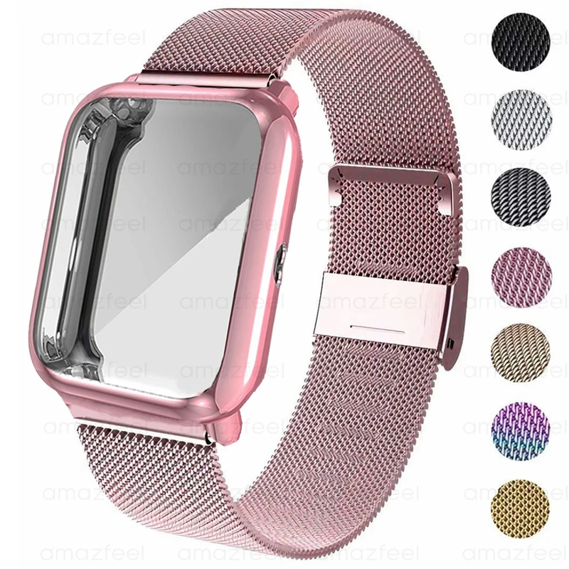 Защитный чехол с ремешком для Xiaomi Amazfit GTS 3 GTS 2 mini браслет Meatl браслет для Amazfit Bip U Pro защитный чехол с покрытием