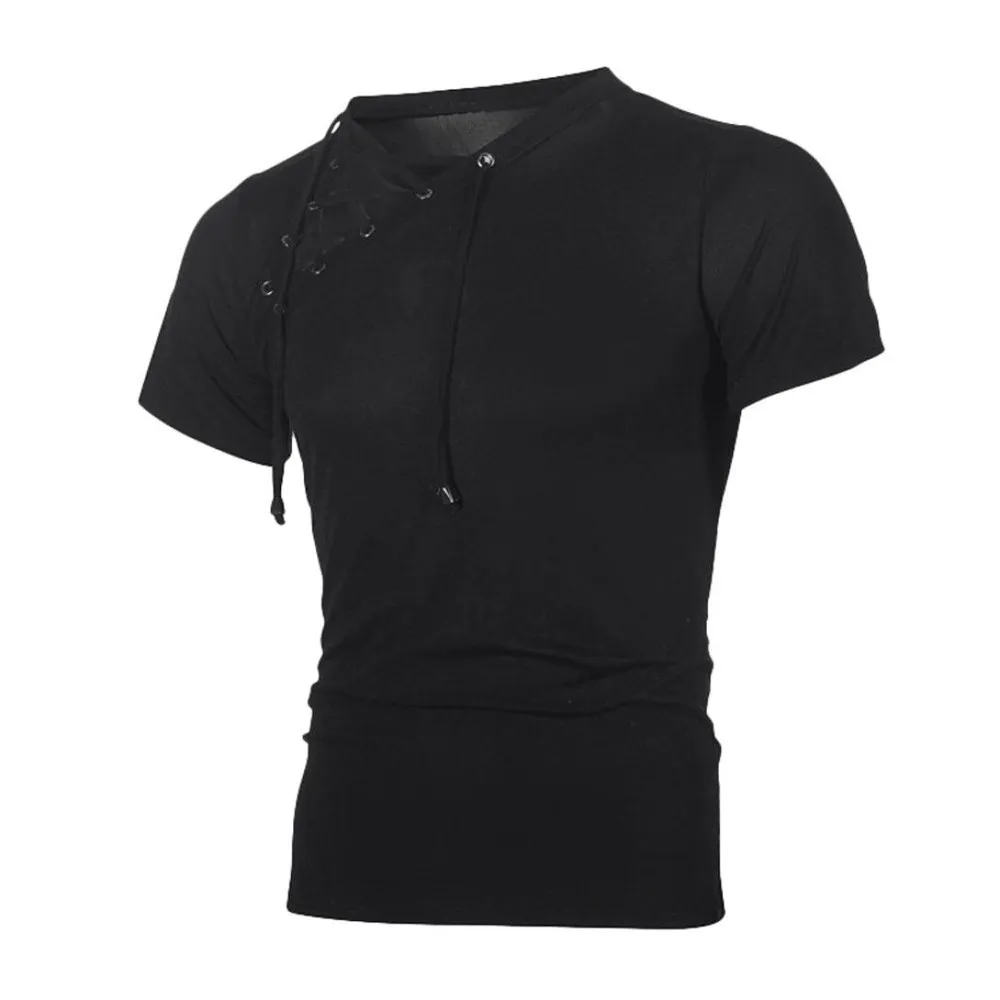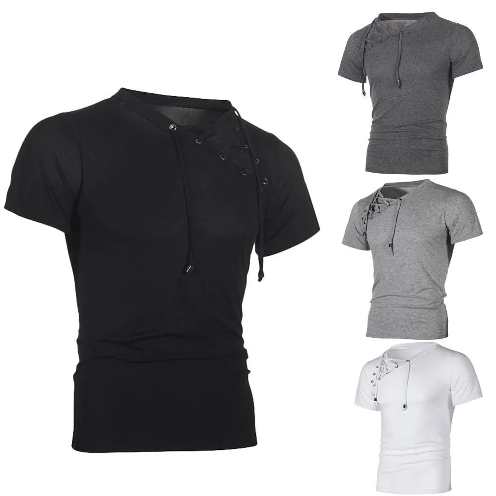 Спортивная короткая футболка со шнуровкой, Однотонная футболка с диагональной сеткой и веревкой, 100% хлопок, с круглым вырезом и короткими рукавами