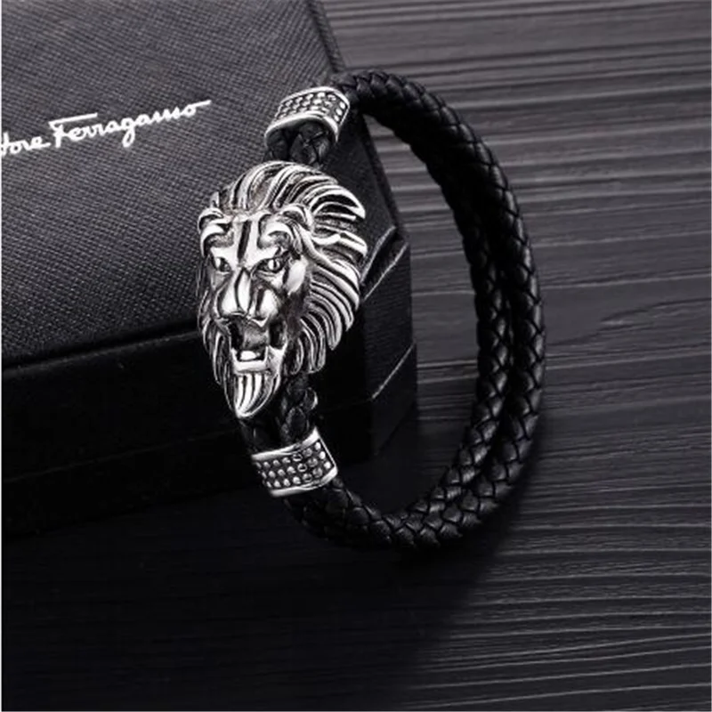 Модный металлический ручной черный кожаный браслет Прейри Кинг Лев